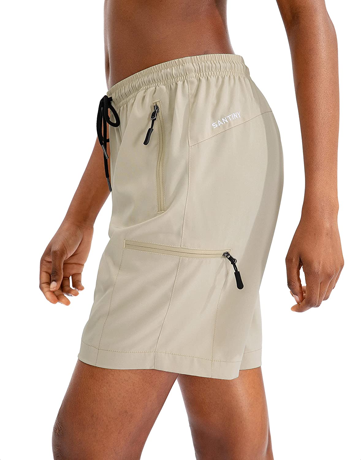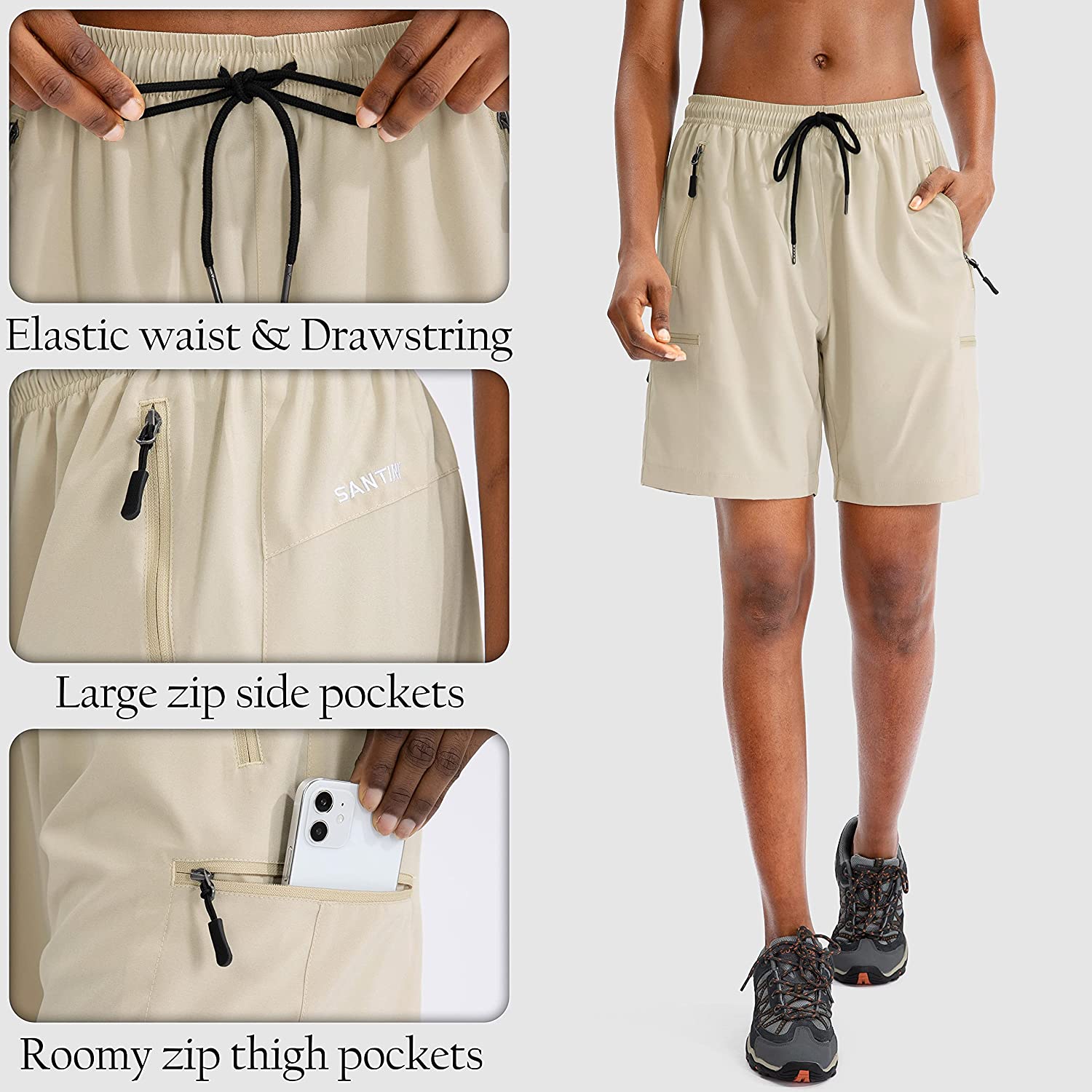Elastic Waistband: The Santiny womens cargo shorts have a 360-degree elastic waist with adjustable drawstring to prevent pressure marks on the tummy and offers a custom fit during hiking.