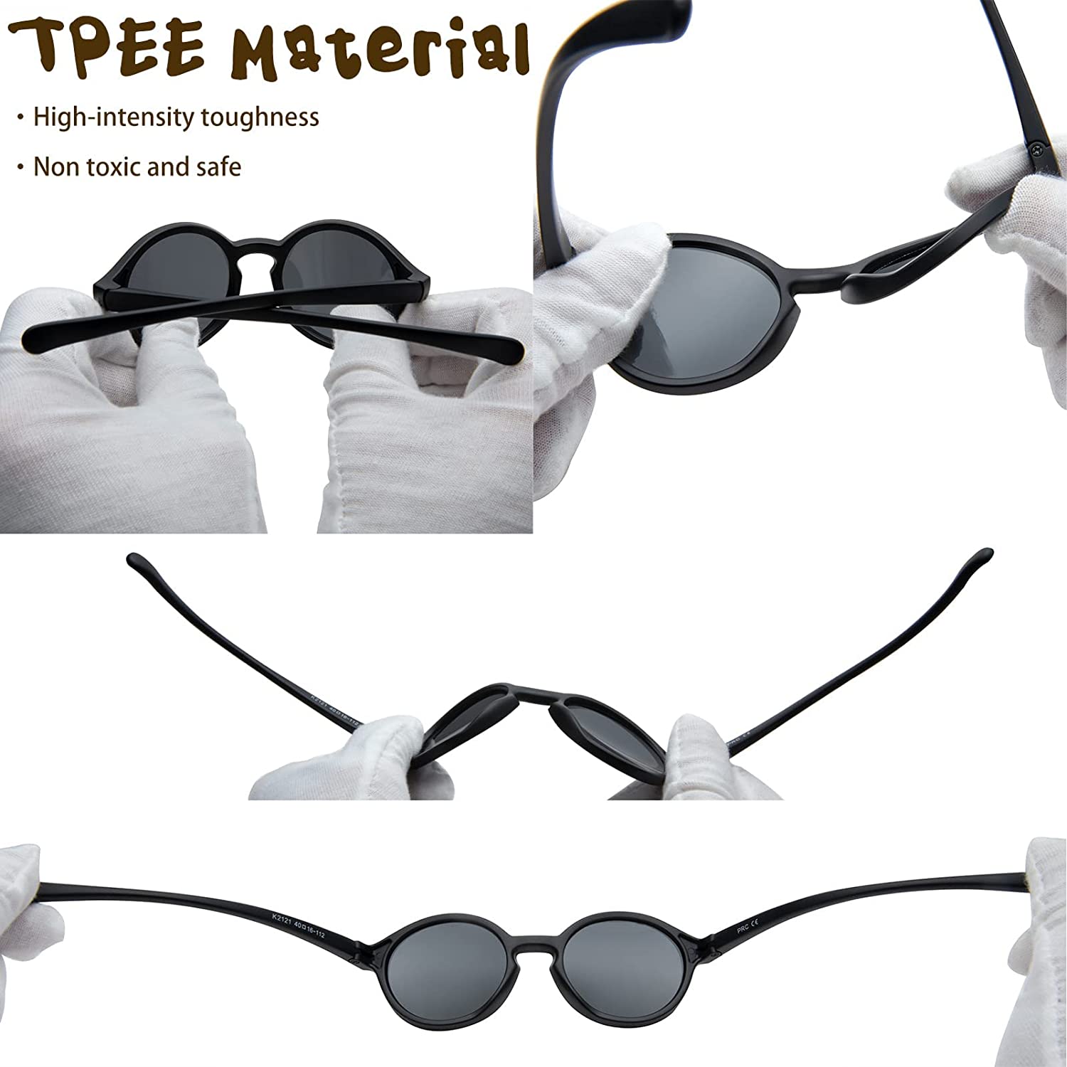SAFTY FRAME DESIGN : Toddler sunglasses made of durable, non-toxic, BPA-free materials ,Conforms to CPSIA standards,Focus on baby safety