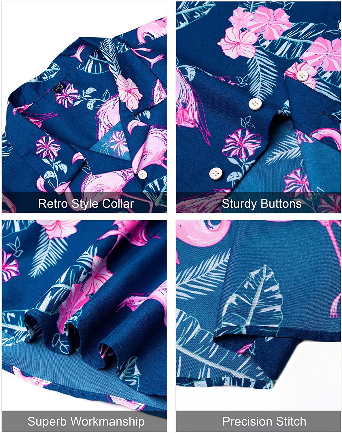 【Printed & Shirt】:The combination of rich colors and fashionable printed will not let you down. The Cuban collar design makes the Hawaiian short sleeve shirt look more retro and casual.