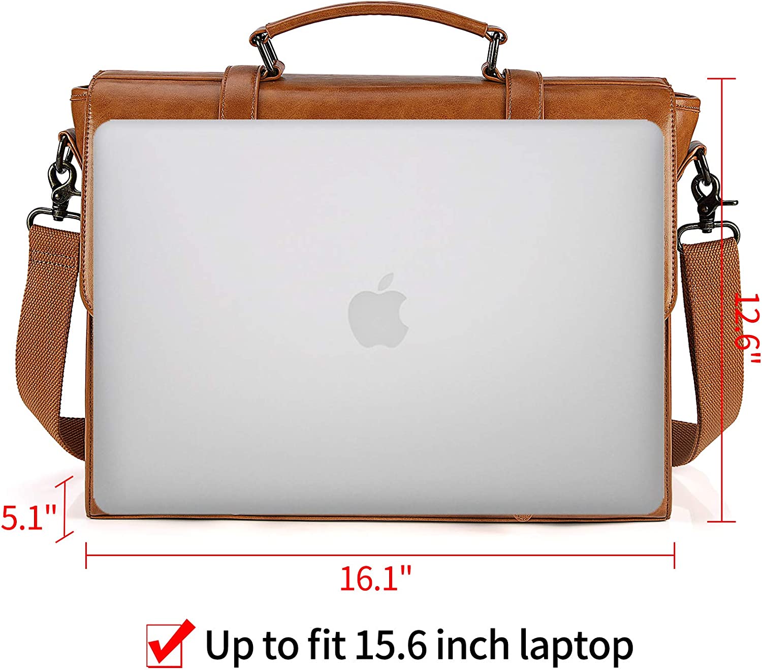 - 【Convenient Magnetic Snap & Comfortable Fit】Laptop messenger bag is double secured by magnetic snaps and zippers. Inner padded laptop sleeve fits most laptops up to 15.6" and cohesive seal ensures it to be steady.