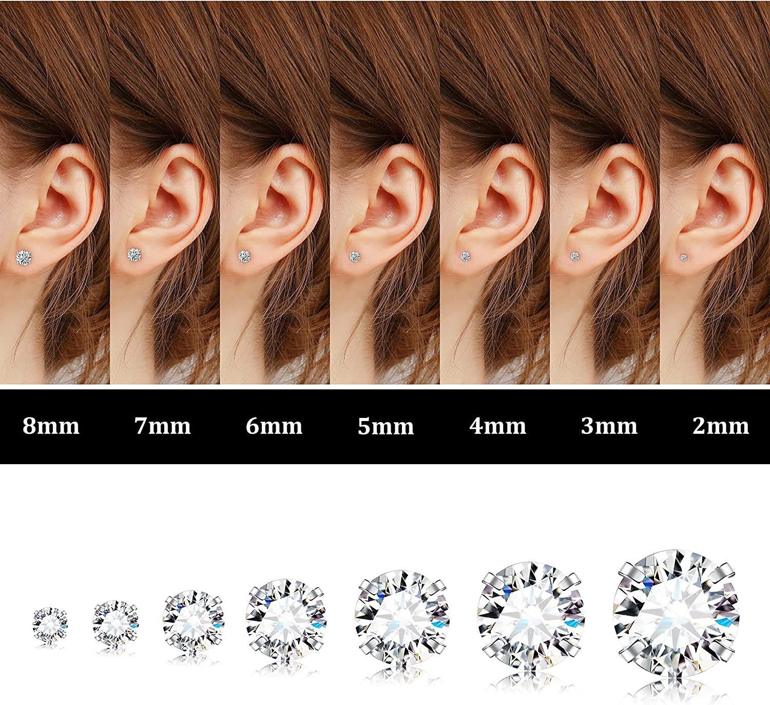 【7Pairs Multi Size Stud Earrings】1 Set=7 pairs stud earrings, comes with 7 different sizes round cubic zirconia, 2mm, 3mm, 4mm, 5mm, 6mm, 7mm, 8mm are available, more choices for daily wear. Meet your needs in multiple sizes.