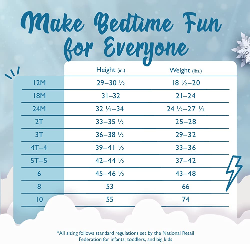 SAFETY & COMFORT: To ensure maximum comfort, choose the right size for your child to avoid clothing that is too long or too loose. These pajamas are manufactured in accordance with all clothing safety standards and are flame-resistant.