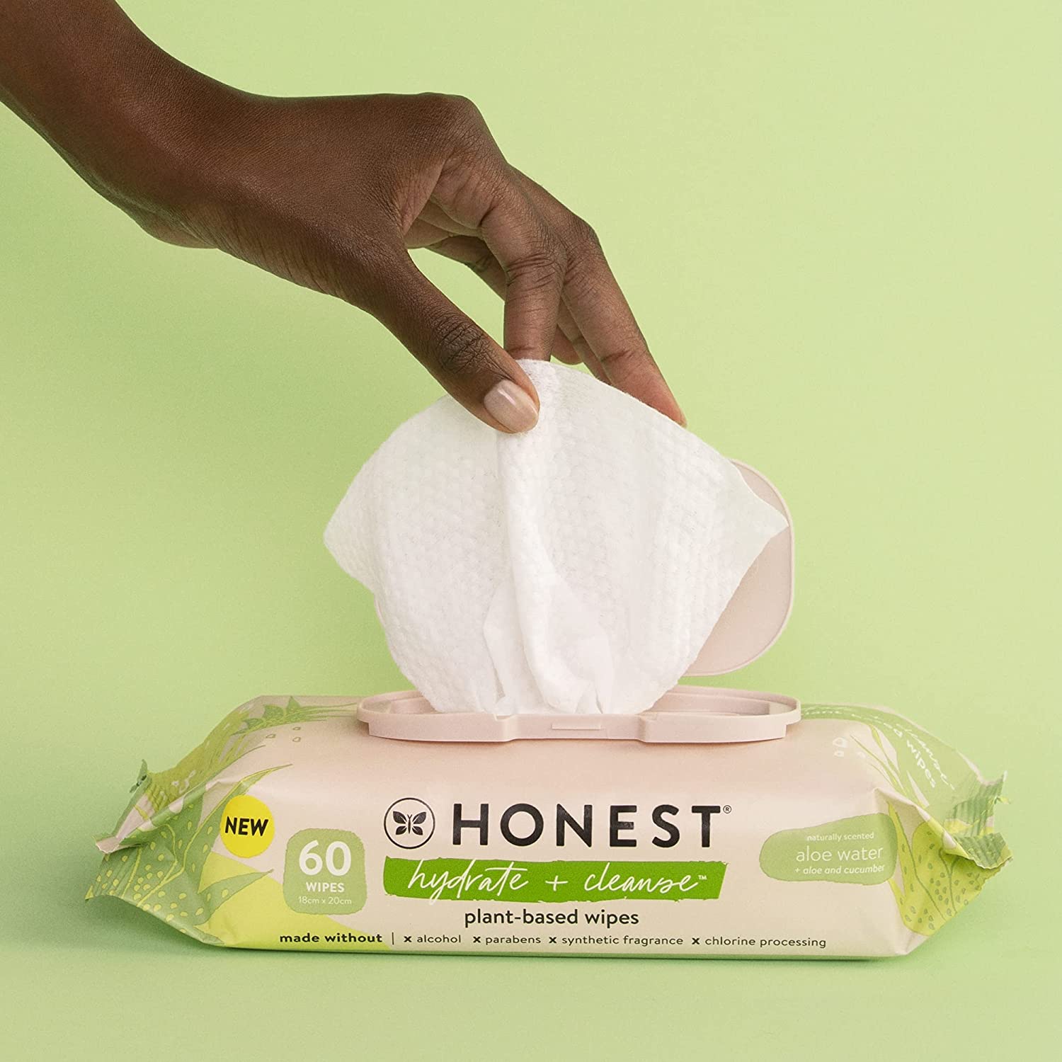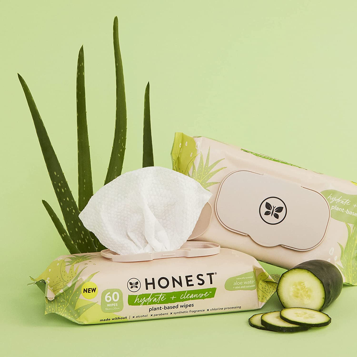 The Honest Company Hydrate + Cleanse Benefit Wipes | Cleansing Multi-Tasking Wipes | 100% Plant-Based, Hypoallergenic | Aloe + Cucumber, 60 Count
