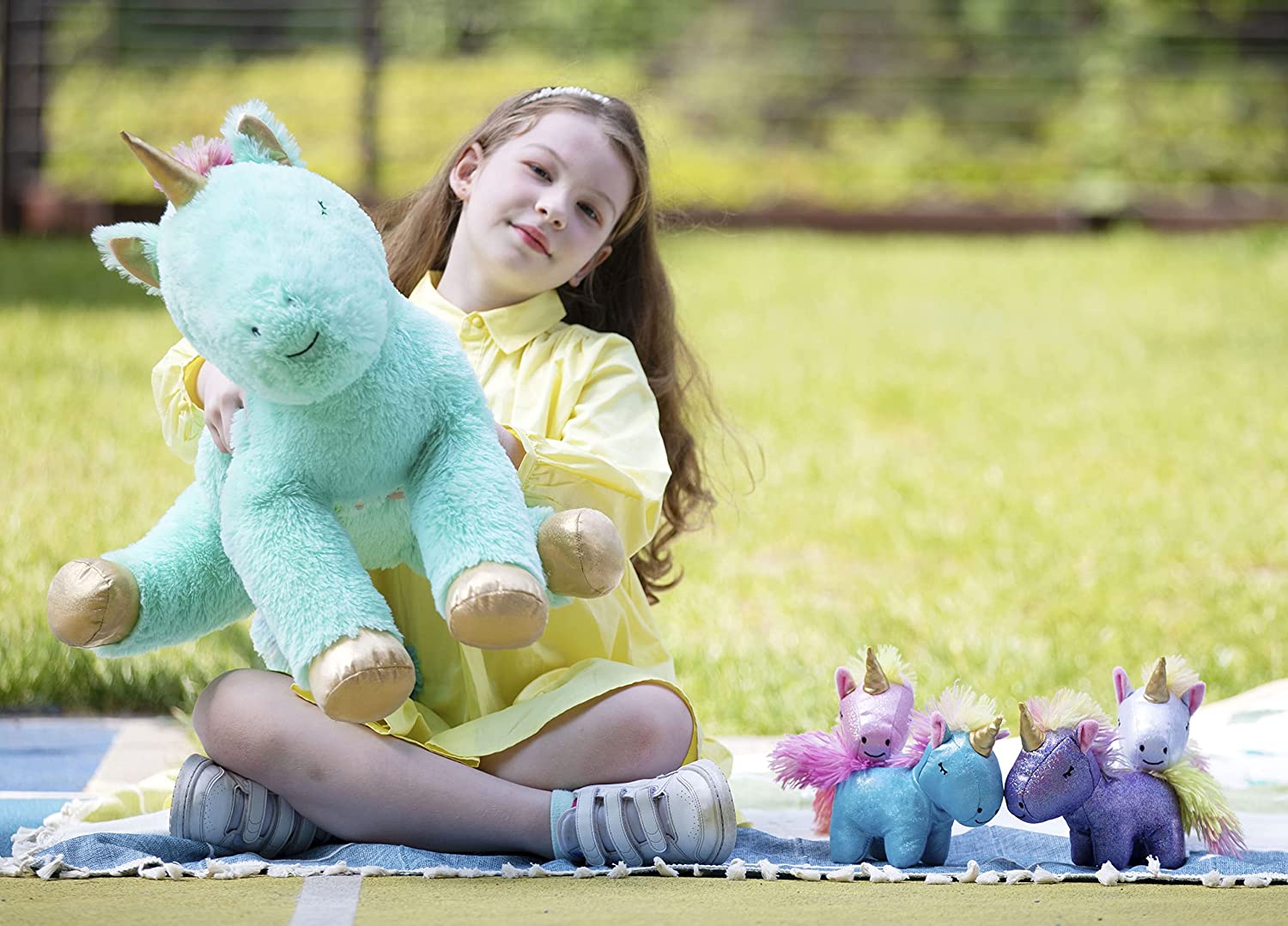 - YOU WILL RECEIVE: A super cuddly 24 inch green unicorn and four lovely 8 inch colorful little unicorns.