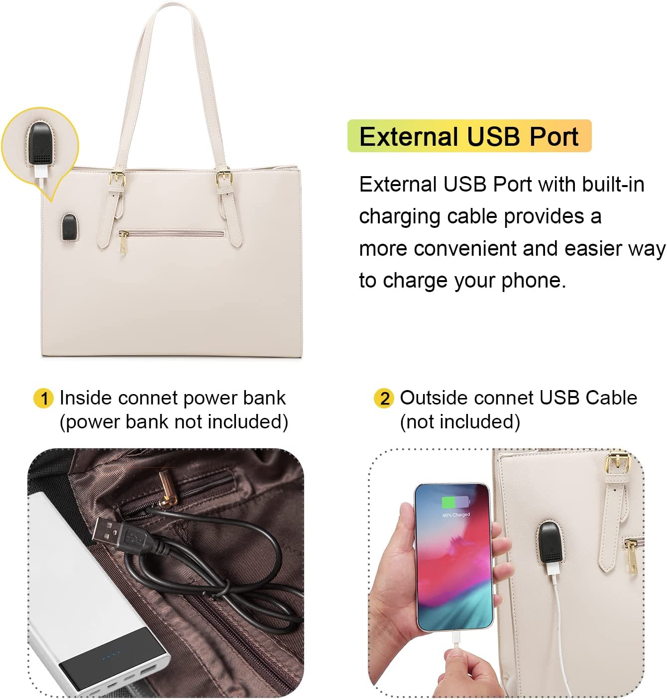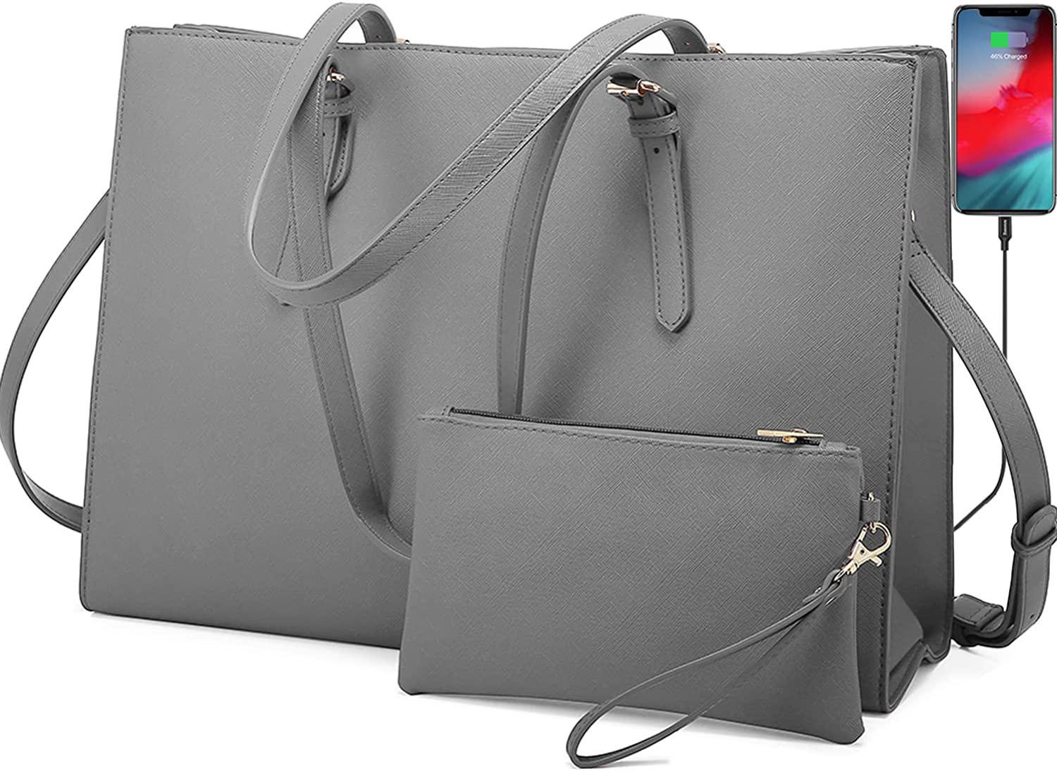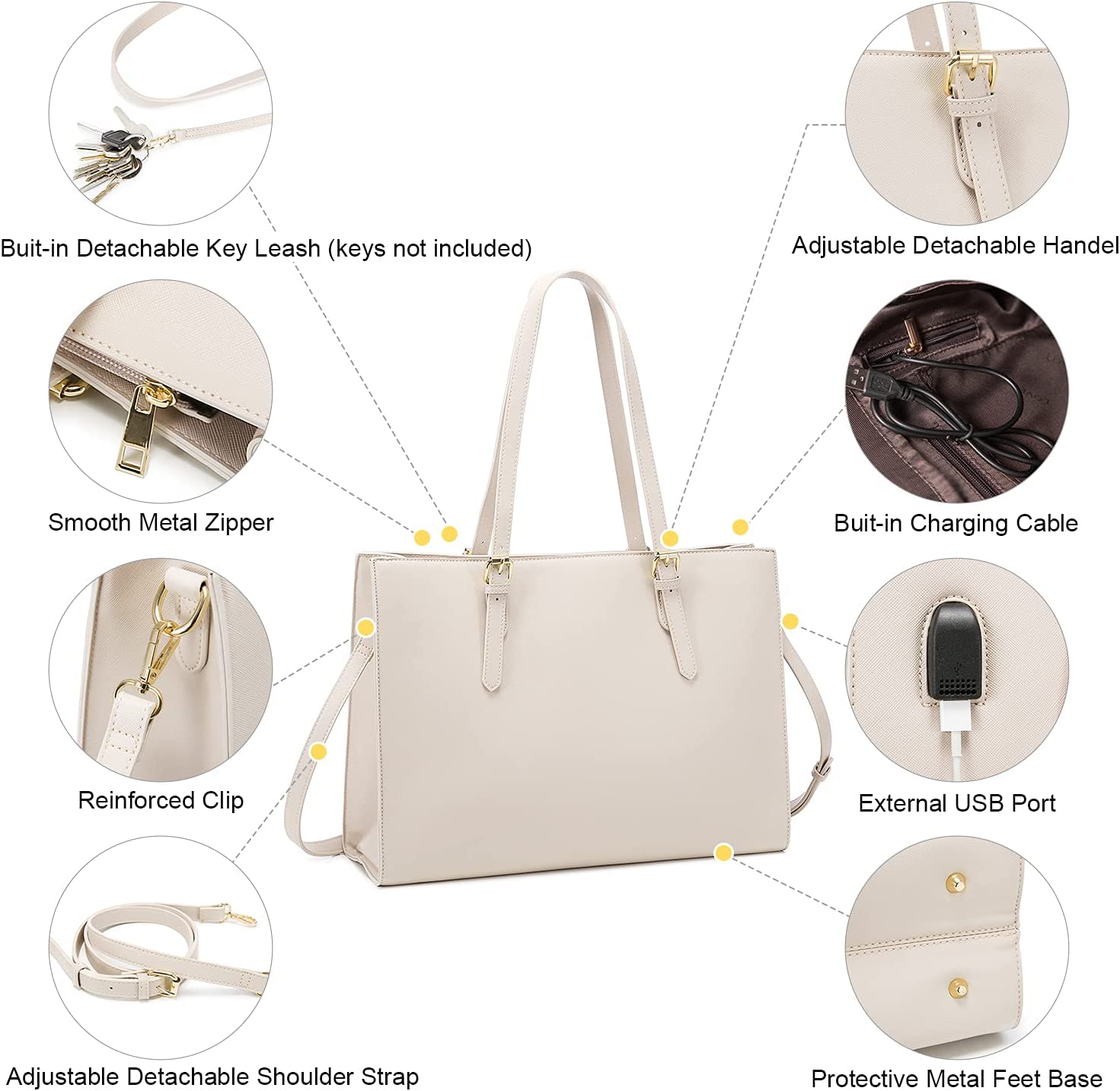 • 【Multi-pocket Design】Multiple pockets keep your belongings organized. The handbag structure consists of a 15.6-inch laptop pocket, an iPad pocket, a middle zipper pocket, an internal side zipper pocket, two large opening compartments, two small opening pockets, two pen pockets and an outer zipper pocket. And an external USB charging mouth.