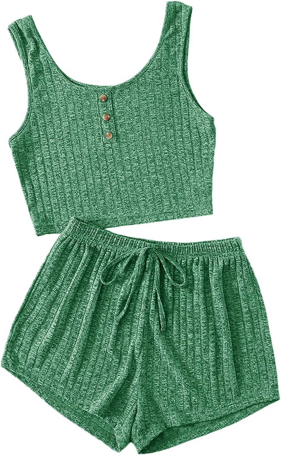 SheIn Women's 2 Piece Sleeveless Button Crop Tank Tops and Shorts Lounge Set
