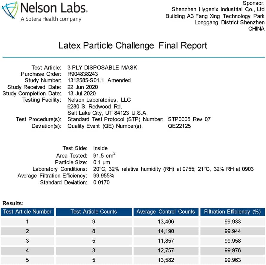 Hygenix 3ply Disposable Face Masks PFE 99% Filter Quality Tested by a US lab (Pack of 50 Pcs)