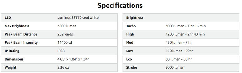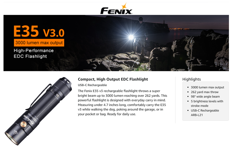 Included Components | Fenix E35 V3.0, LumenTac Organizer |