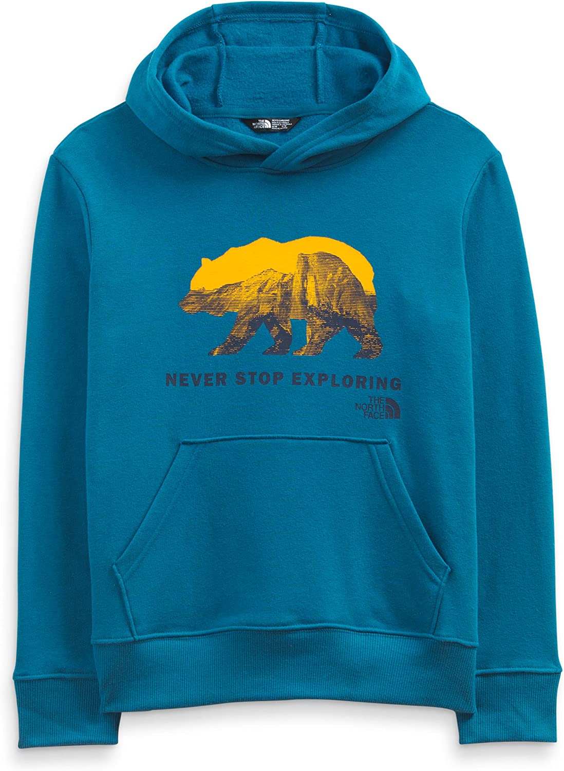 OUTDOOR VERSATILITY. Never Stop Exploring with functional features that help him go further — a three-piece fixed hood provides extra coverage and protection against bad weather while kangaroo front pockets keep his hands warm on chilly days.