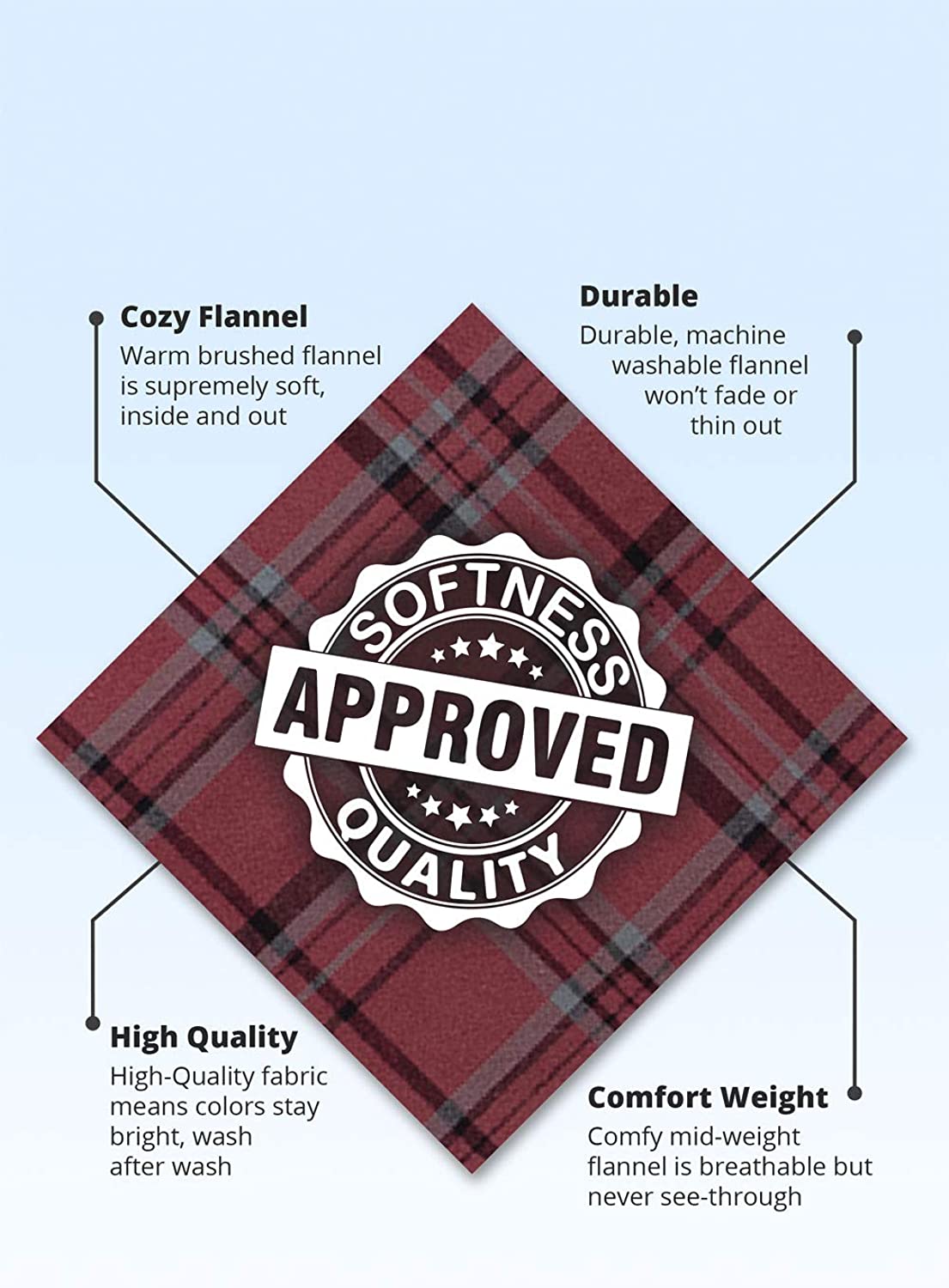 Long-lasting - Made to last with 100 percent brushed cotton flannel that has been yarn-dyed to ensure that the material maintains its color and vibrancy long-term