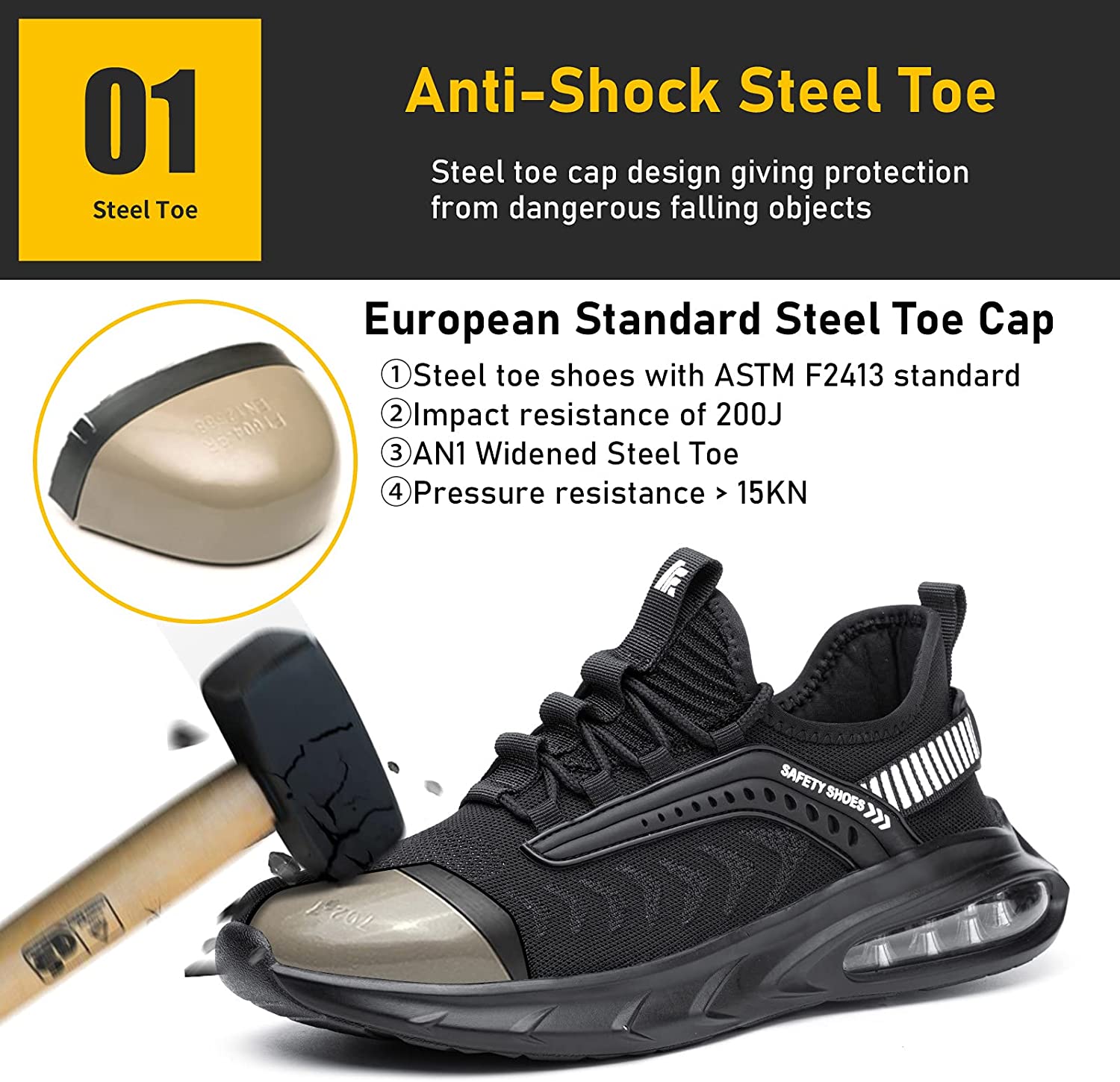 【Steel Toe Cap】: The composite toe shoes for men can help to protect your feet from falling or rolling objects, greatly enhance the safety.