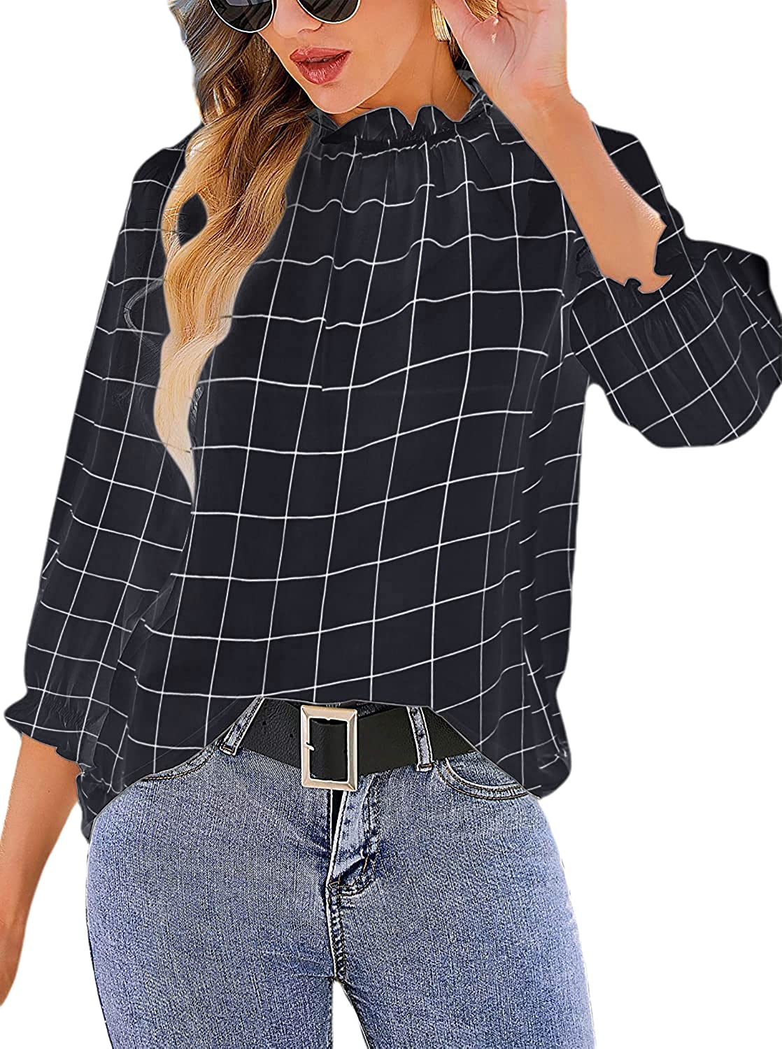 LYANER Women's Frill Mock Neck Flounce Long Sleeve Solid Blouse Office Shirt Top