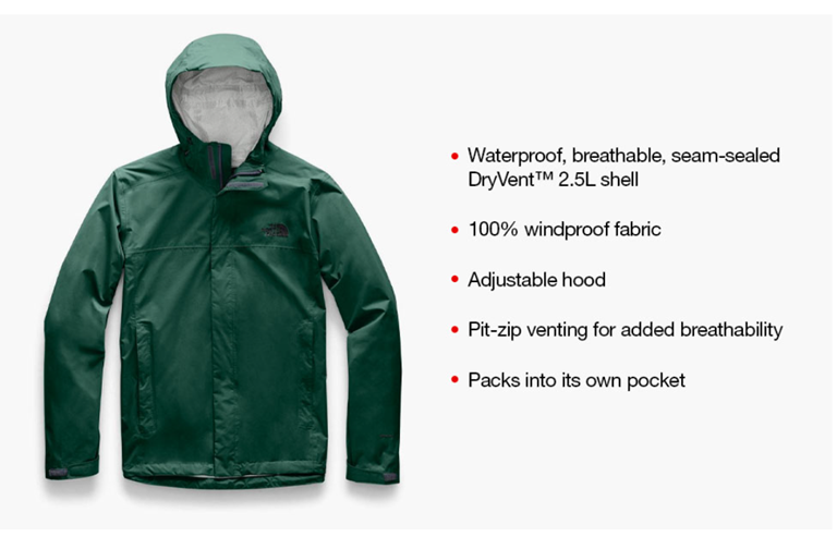 RAINY ADVENTURES. Constructed with a waterproof, breathable, and seam-sealed DryVent 2.5L fabric, the Venture 2 is a classic year-round rain jacket designed to withstand backcountry storms and is styled for everyday use.