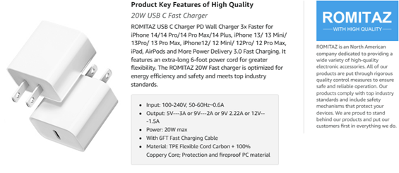 - [Romitaz PD 3.0 Fast Charger for iPhone] iPhone Fast Charger equipped with 20W PD 3.0 USB Type C power delivery wall plug, PD 3.0 Quick-Charge USB C port provides Max 20W output power, charge your device up to 3x faster than original 5W charger,charging your iPhone 14 up to 50% in just 30 minutes, saving over 1.5hrs for you.