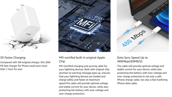 - [Apple MFi Certified Charging Cable] With the Apple MFi Chip, the Charging cord equips automatic chip recognition function. The Apple MFi Certification ensures 100% flawless compatibility with Apple devices. No more trigger warning messages. And synchronize Photos, Music, Videos and Files at a data transfer speed of up to 480Mbps(30MB/S). The transfer of 1G large files finished in 25s.