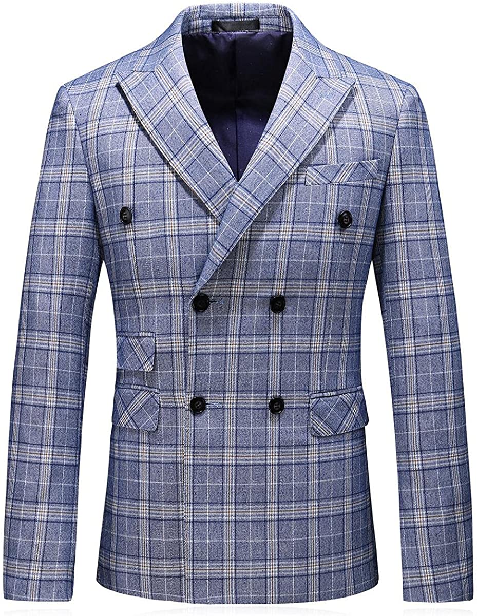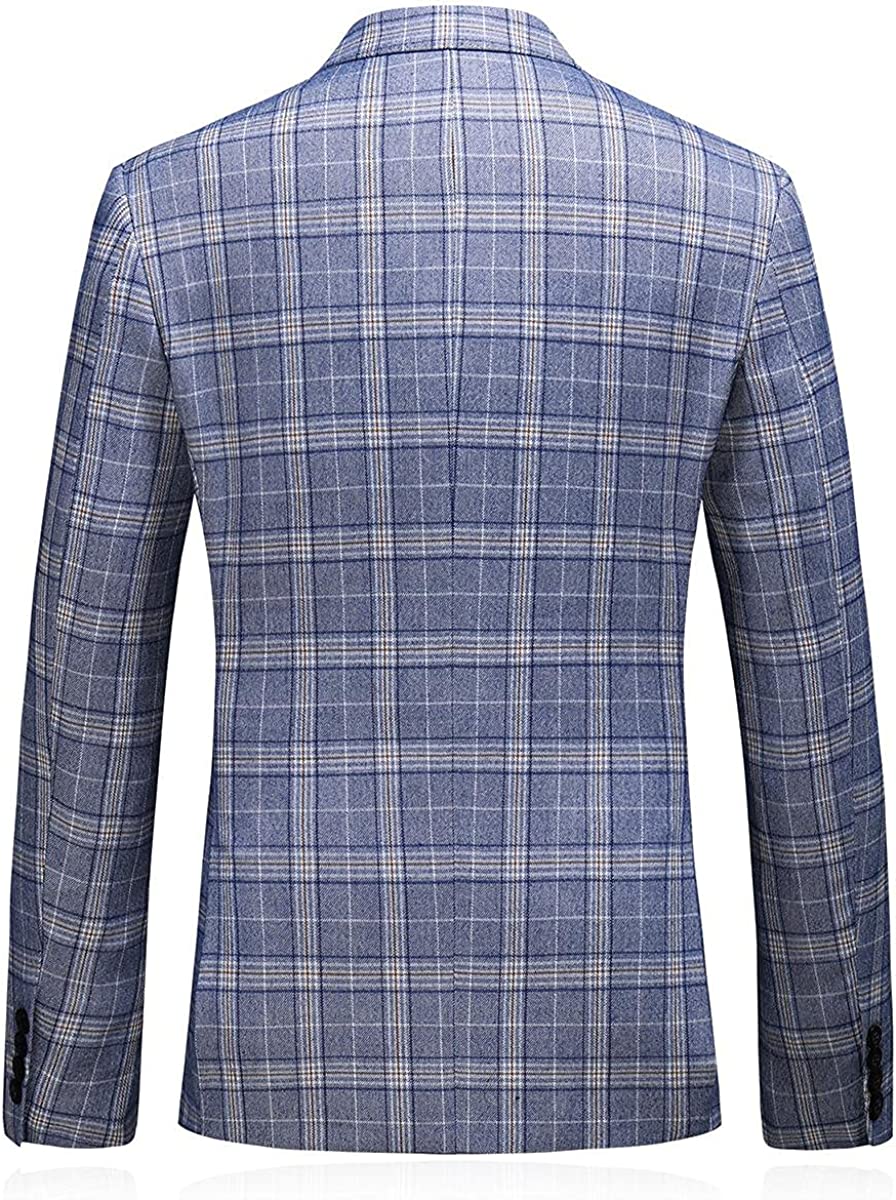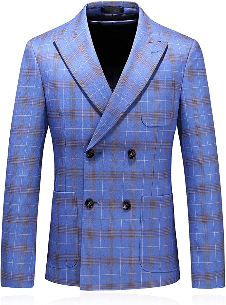 • Fashion Blue plaid double breasted suit for men, three piece including suit jacket and front flat pants and waistcoat. Size Tip:Some customers who ordered it reflect the size is a little small, You can order it one size up.