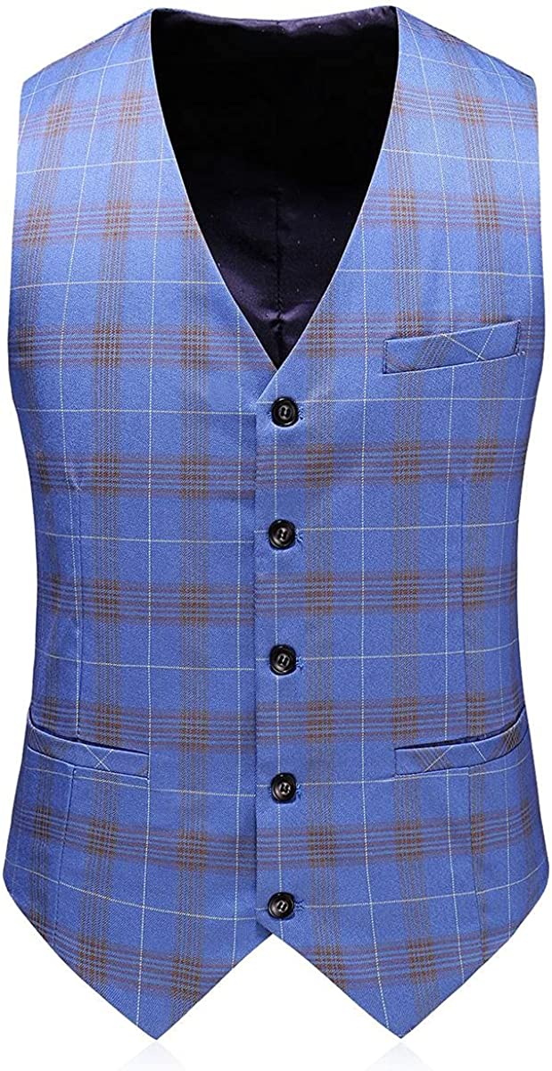 Mens Plaid 3 Piece Suits Slim Fit Double Breasted Plaid Suit Jacket Vest Pants Set Formal