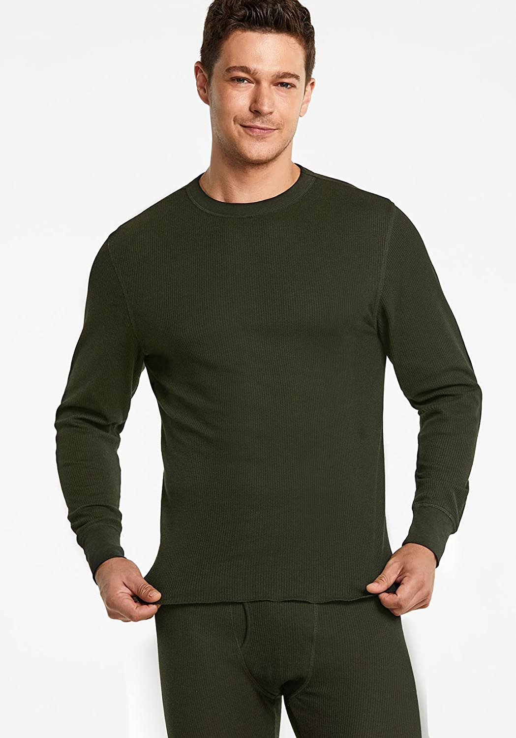 CQR 1 or 2 Pack Men's Long Sleeve Thermal Underwear Tops, Midweight Waffle Crewneck Shirt, Winter Cold Weather Thermal Shirts