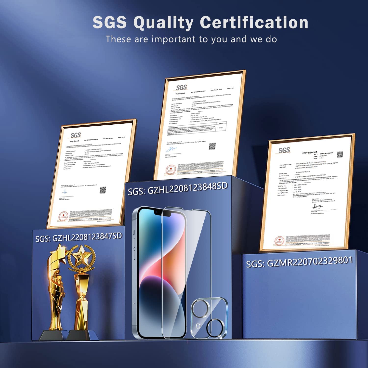 - [RoHS Environmental and SGS Drop Test Certification]: QHOHQ tempered glass and camera cover with 9H hardness tested, SGS-certified screen protector can withstand a 6-foot drop without damaging your phone screen,and reach 99.99% light transmission test (SGS certificate NO.: GZMR220702329801); At the same time, the products have passed the RoHS environmental protection test report (certificate NO.: GZHL2208123848SD and GZHL2208123847SD), meet international environmental standards.