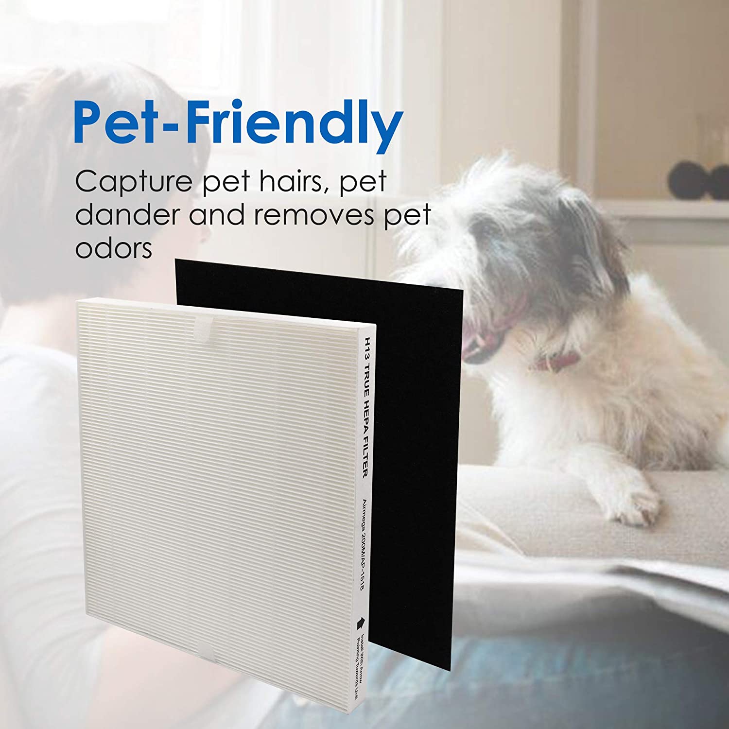 -Two (2) Deodorization Activated Carbon Filters: Removes larger particles in the air like dust, hairs, pet fur, lint, prolongs the life of True HEPA filter, and absorbs household odors from pets, cooking, smoking, wildfire, and harmful VOC’s