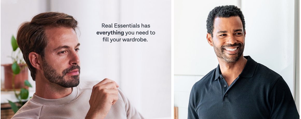 Real Essentials Offering exclusive sizes for big and tall, king-size, athletic-build men.
