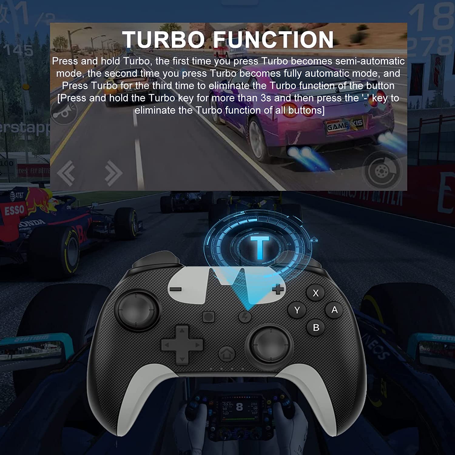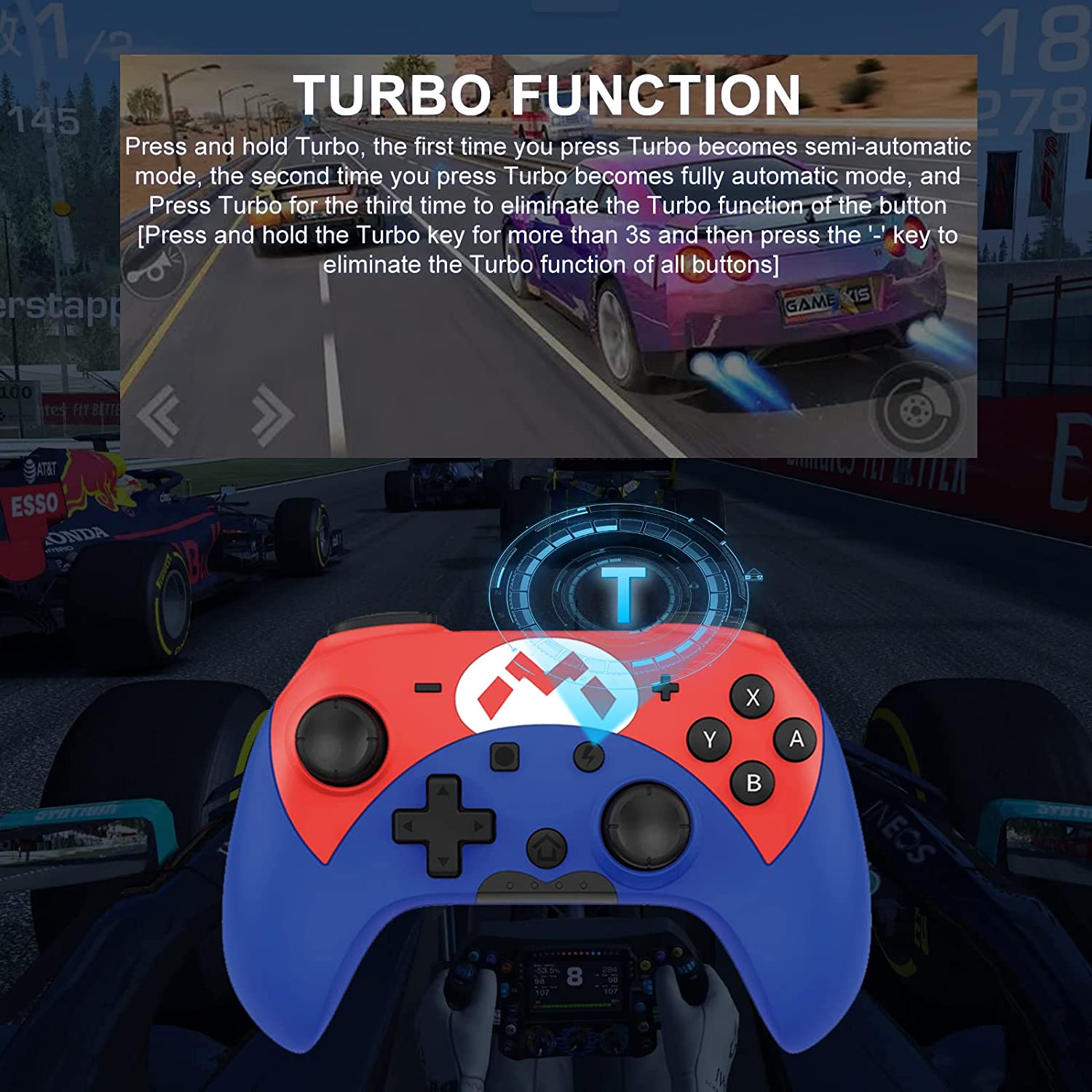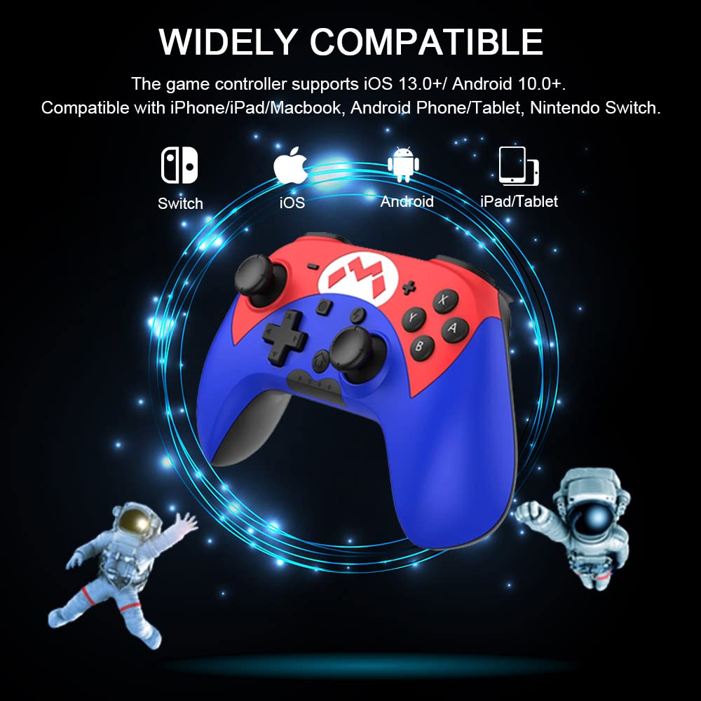 • ?【Dual Motors and Six-Axis Gyroscope for Switch】This gaming controller has a one-button connection to the Switch function, you can easily connect by long pressing the c button. The super sensitive 6-axis gyro sensor provides precise motion control. Plus dual vibration motors with timely shock feedback, switch controller make you feel the ultimate gaming experience.