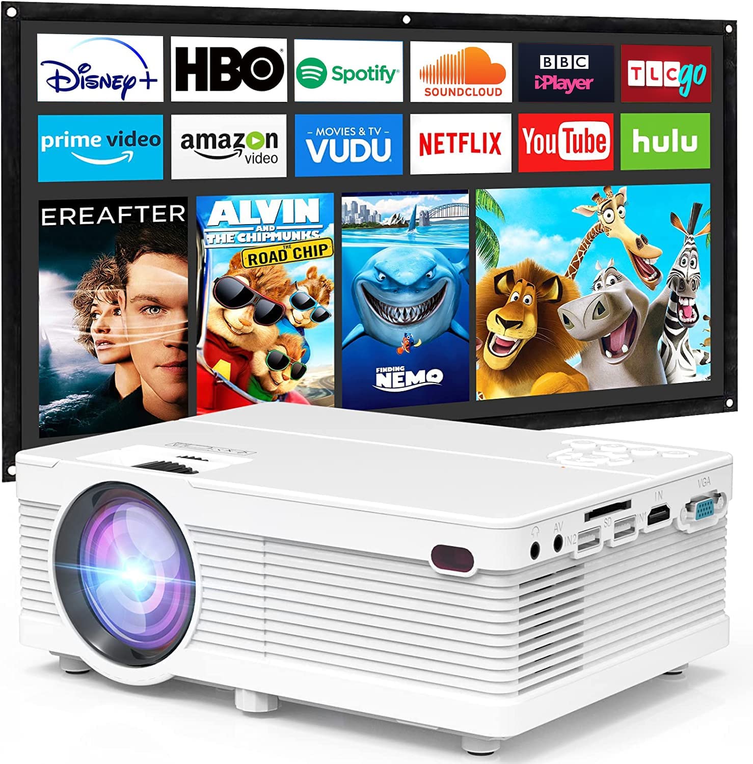 Mini Projector 7500Lumens Portable Projector Full HD 1080P Supported, Home Theater Projector Compatible with TV Stick, Phone, Games, HDMI, AV