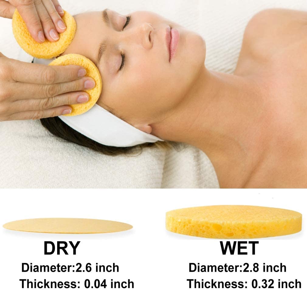 - 【Package & Size】: 50-count little round cellulose facial sponges. 2.8" dia. x 0.32" thick after hydrated