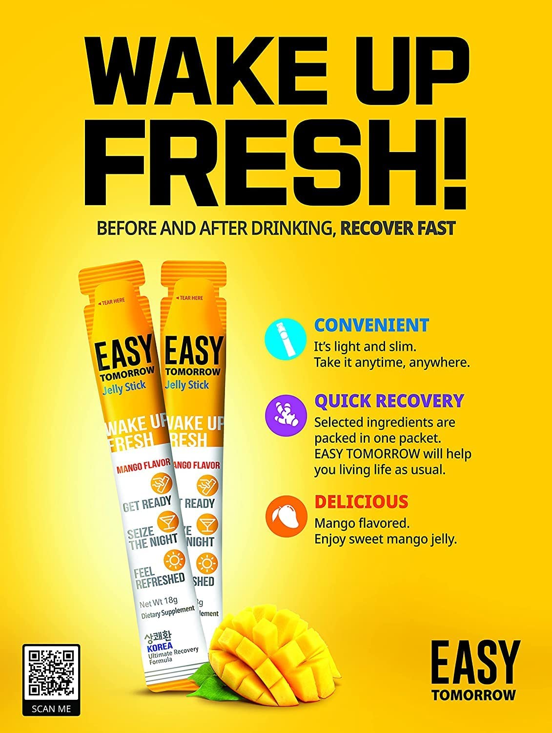Easy Tomorrow Jelly Stick Before/After Drink Alcohol, After Party Recovery & Relief for Great Night & Better Morning, Party Vacation Aid, Liver Cleanse Detox, Mango Flavored, 상쾌환, 20 Packets