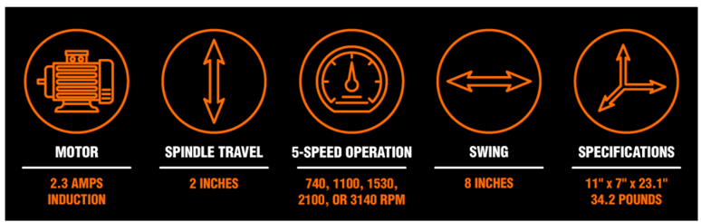 Included Components | 2.3-Amp 8-Inch 5-Speed Benchtop Drill Press |
