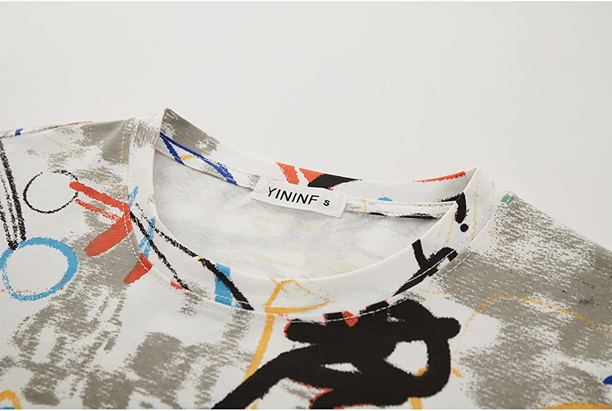 YININF Mens Hipster Hip Hop All Over Graphic Longline T-Shirt