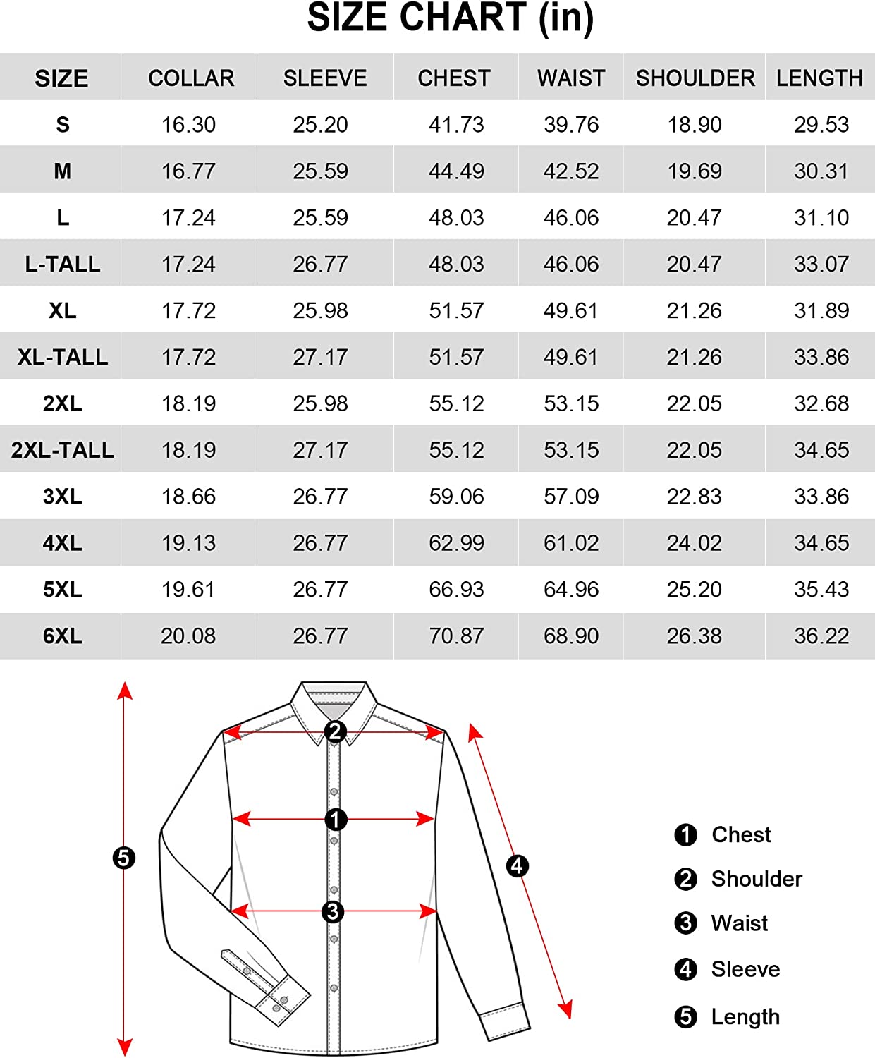 • 【Size】Our button down shirts are US regular fit tailoring style,a variety of sizes and colors for you to choose,please refer to the size chart to choose the size that suits you