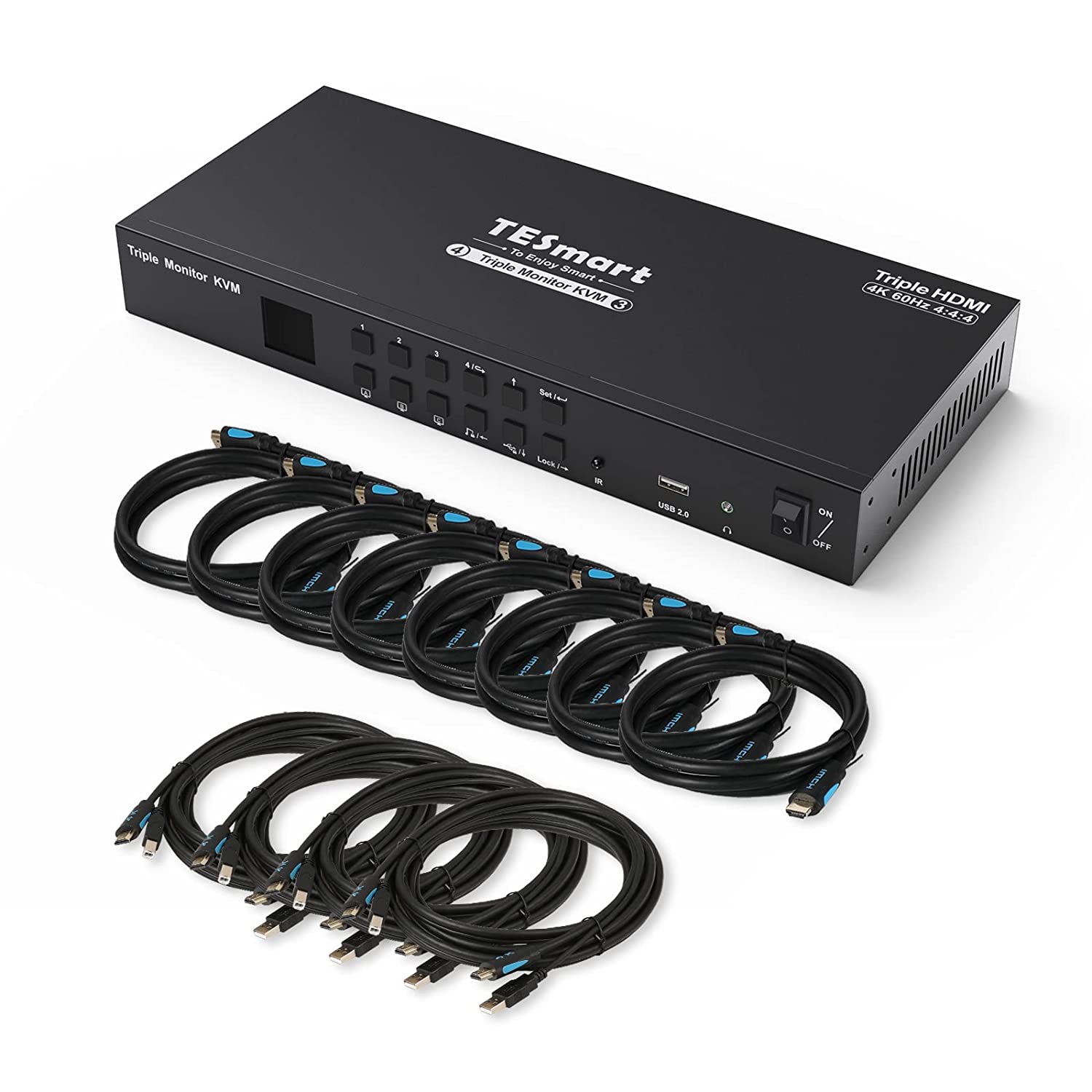 【SUPPORTS SIMULTANEOUS DISPLAY OF MULTI SYSTEMS】TESmart 3 monitor KVM cross supports multiple operation systems, compatible with Unix/Windows/MacOS X/Ubuntu/Debian/Fedora/Raspbian/Ubuntu for Raspberry Pi and other Linux based systems. Plug and play without any software needed. This unit is the best KVM switch choice for IT professionals who tend to work with multiple systems at any given time.