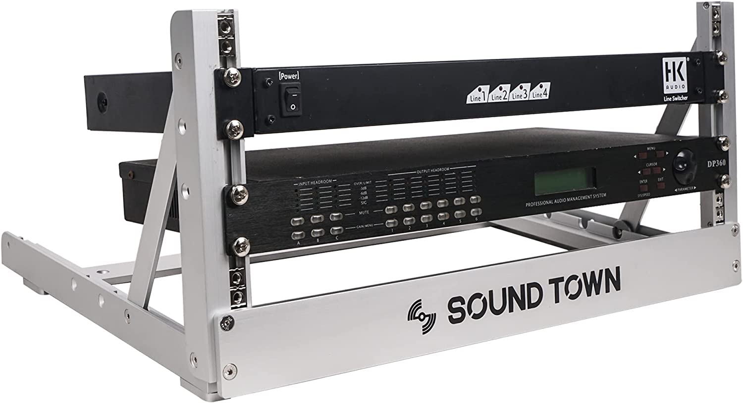 Sound Town 4U Aluminum 2-Post Desktop Open-Frame Rack, Angle Adjustable, for Audio/Video, Network Switches, Routers, Patch Panels (2PF-4A)