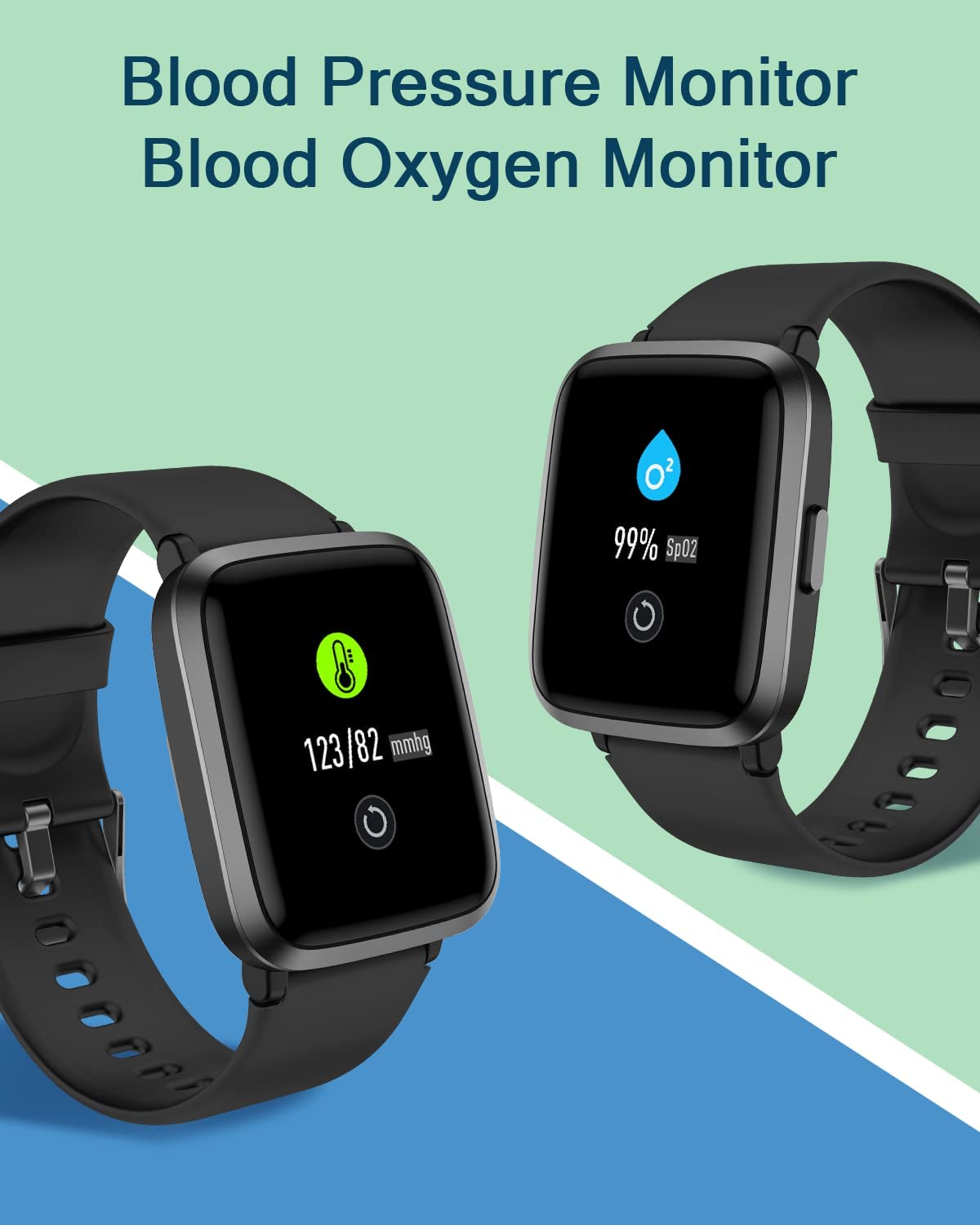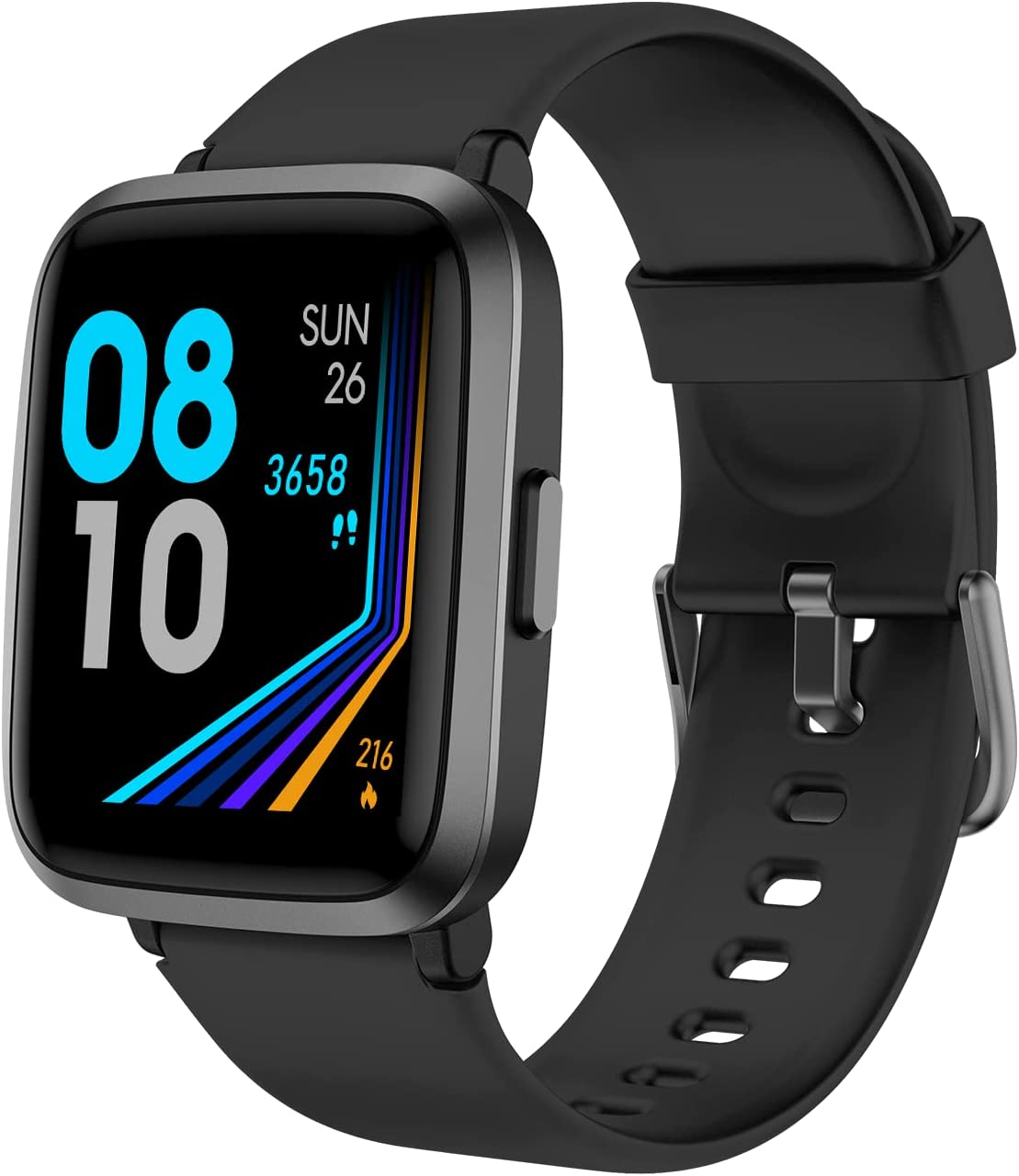 Smart Watch Compatible with iPhone Android Phones 2022, 1.7 inch Watches for Men Women IP68 Waterproof Fitness Tracker with Blood Oxygen/Heart Rate Monitor Sleep Steps Tracker DIY Watch Faces Black
