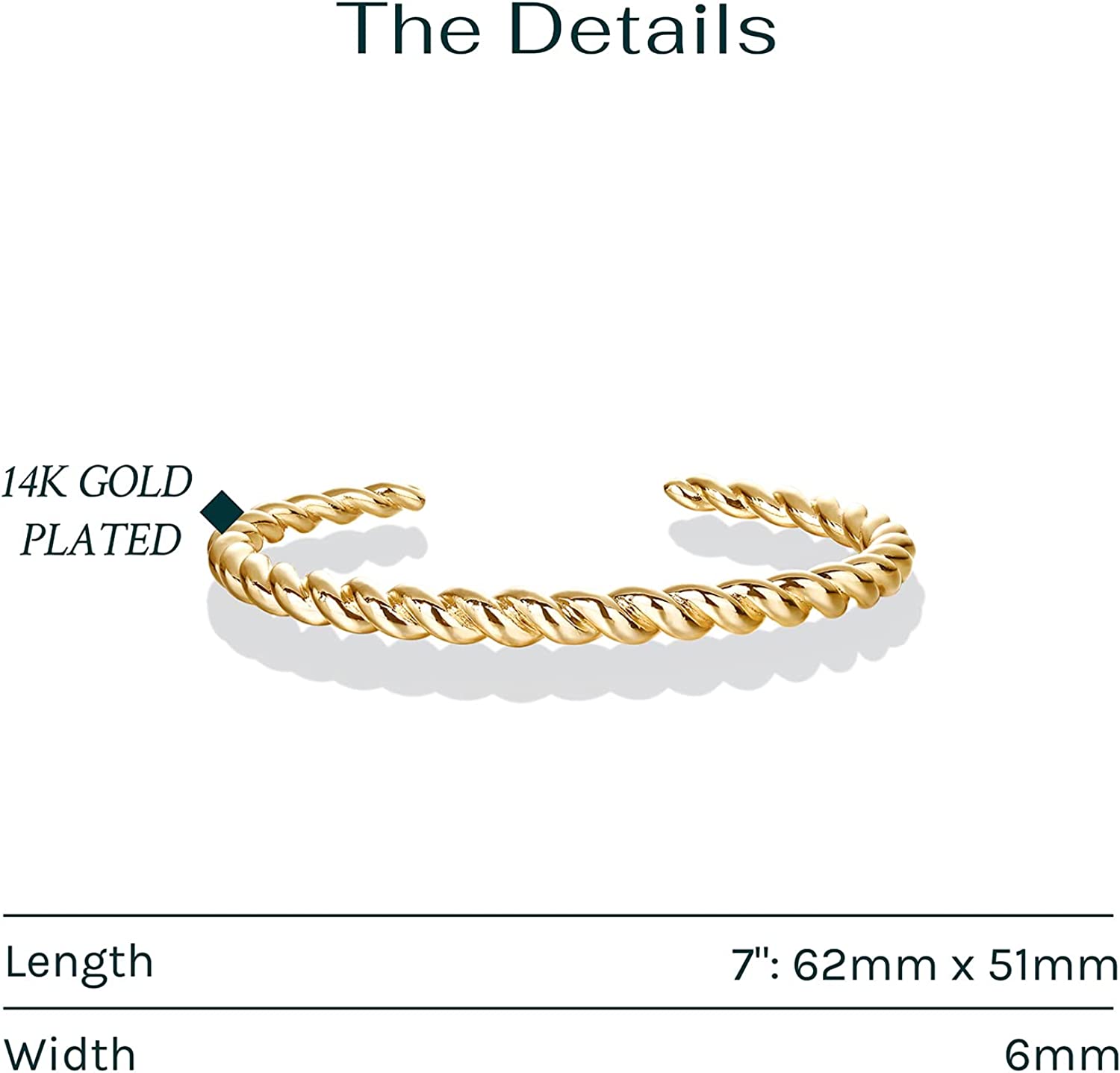 • A twisted, trendy design to wear with a little black dress or a sweatsuit. A luxe looking, 14K gold plated bracelet that is perfect to put on everyday.
