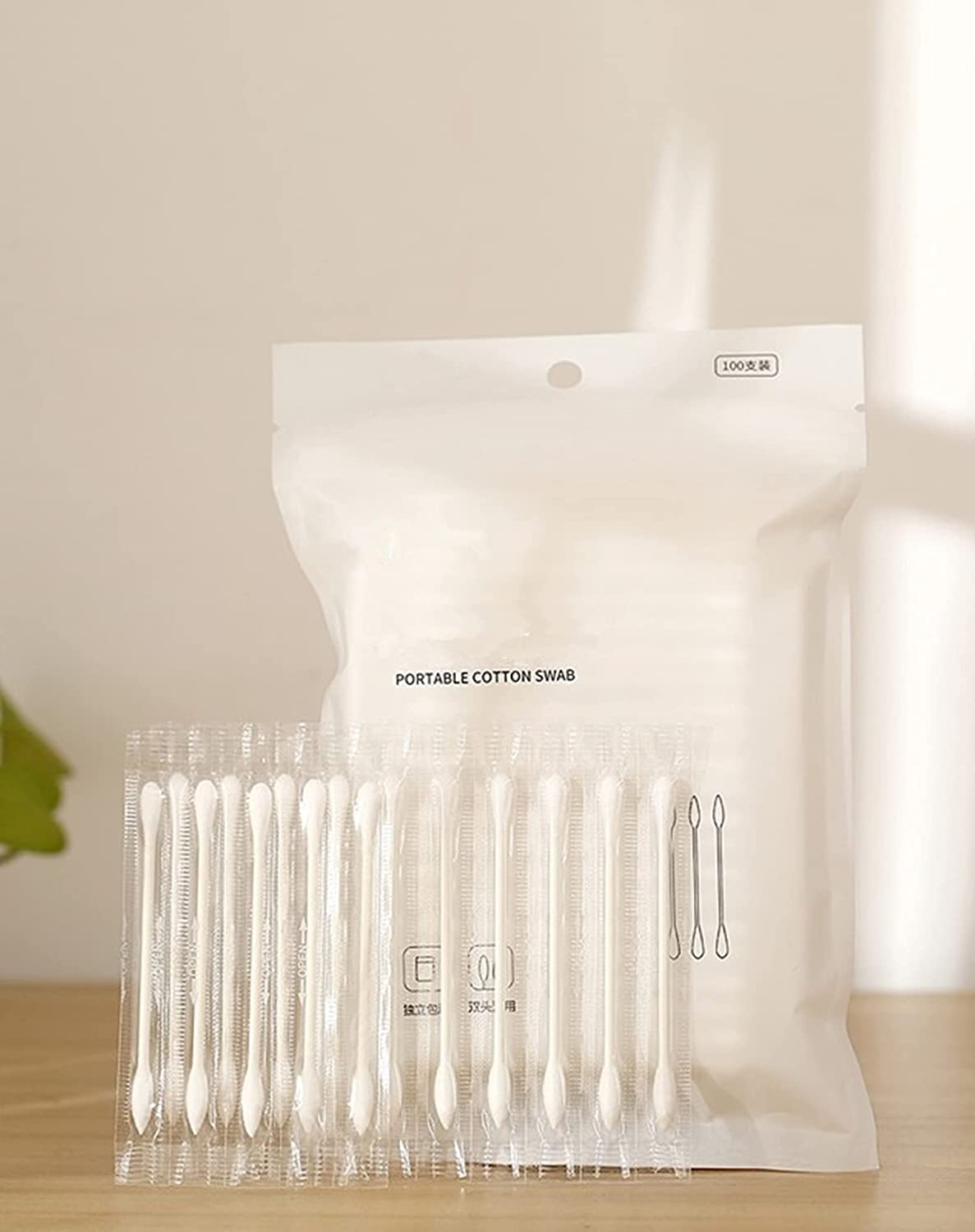 qtips100 individually packaged cotton swabs clean sanitary Travel Portable double headed paper stick disposable cosmetic White