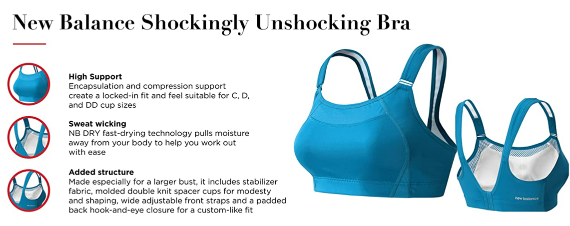 Womens New Balance The Shockingly Unshocking Print Sports Bra :: Have more bounce to manage when in motion? The Shockingly Unshocking Print from New Balance offers NB DRY moisture-wicking technology, stabilizer fabric for high-impact support, molded spacer fabric cups for modesty and shaping, adjustable front straps and a gel-infused back hook-and-eye closure for a custom-like fit, and breathable mesh panels to help keep you cool. All with a stylish print - what more could a bustier girl ask for?