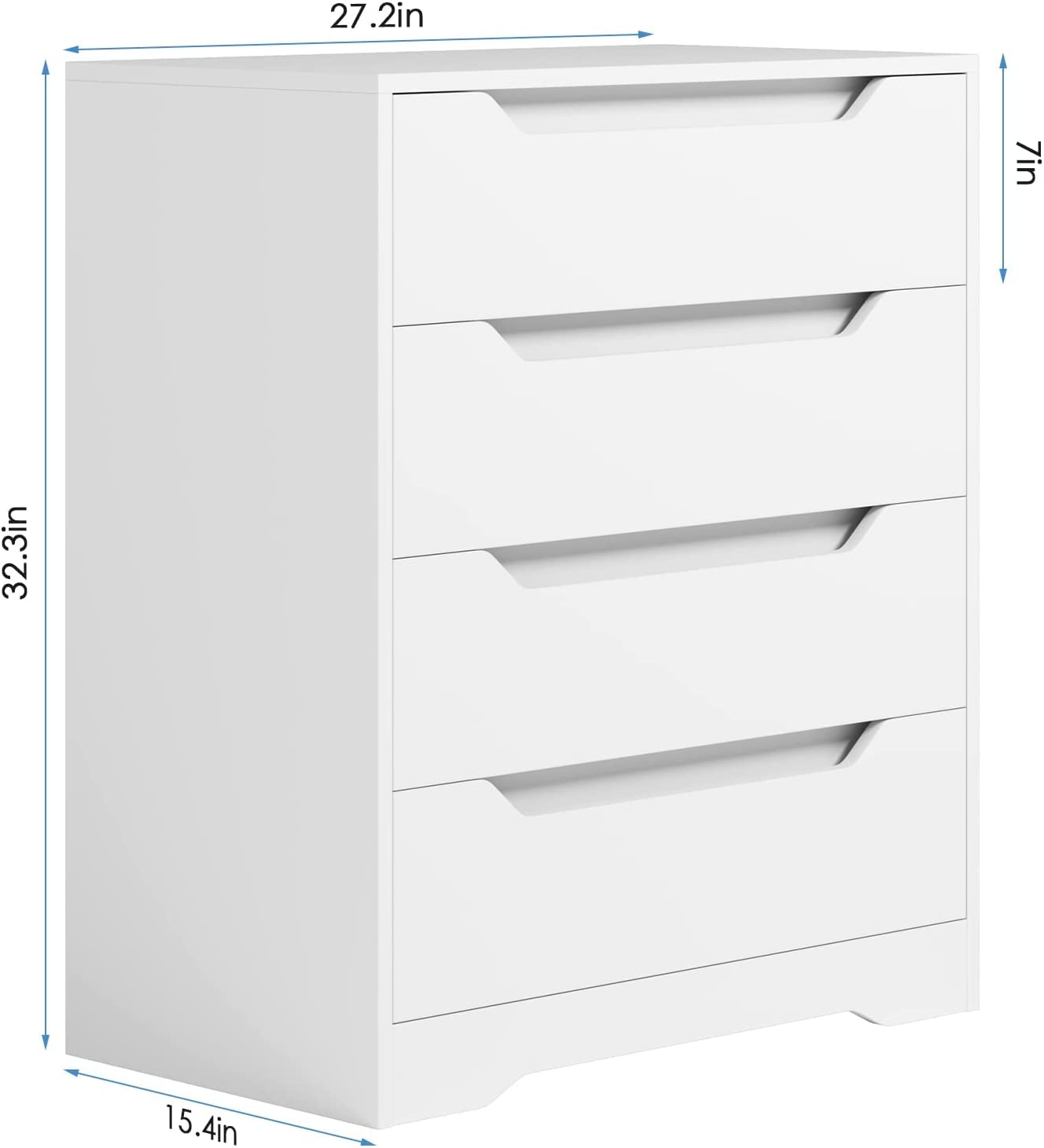 HOSTACK Modern 4 Drawer Dresser, Chest of Drawers with Storage, Wood Clothing Organizer with Cut-Out Handles, Accent Storage Cabinet for Living Room, Bedroom, Hallway, White