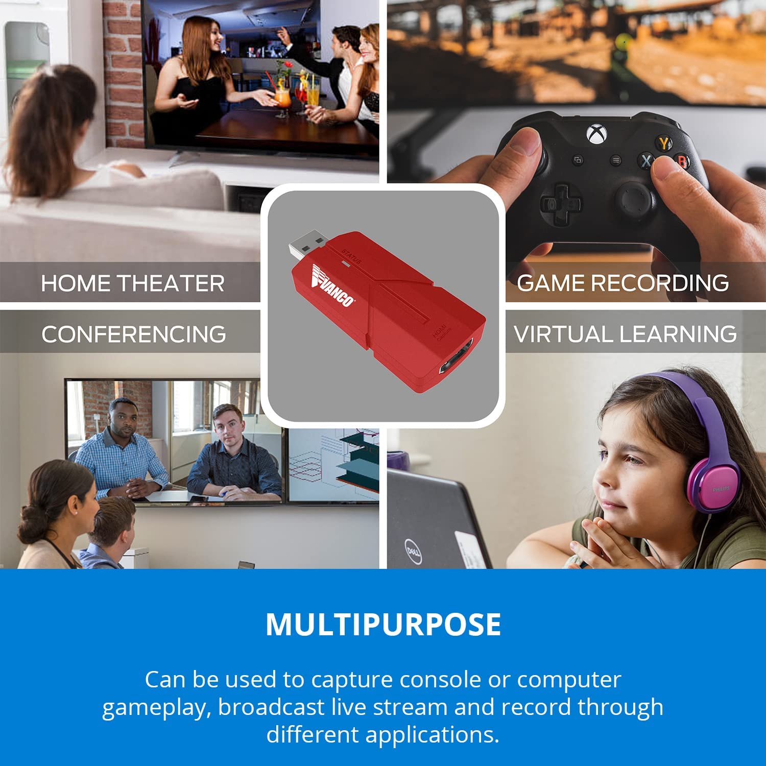 EASY PLUG AND PLAY: The Vanco HDMI to USB Capture Device does not need to install any driver and external power supply as it's a portable streaming capture video device