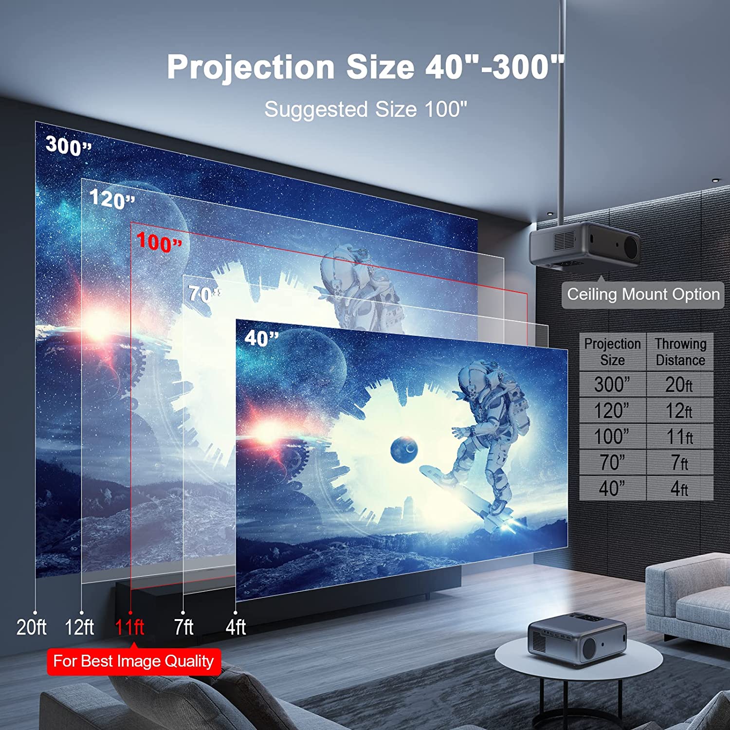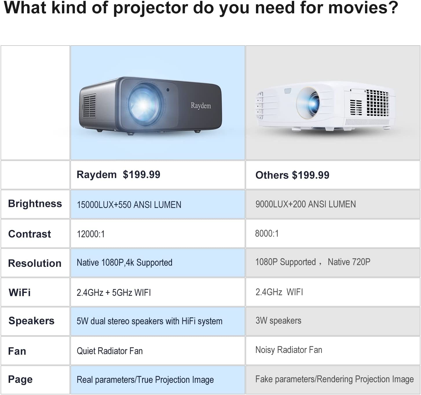 • ?【HiFi Speakers & Low-noise Radiator Fan: 】 We have built-in 10W dual stereo speakers with a HiFi system for a great auditory sense experience. Listen to what you want, not what you don’t with the projector’s optimized low-noise radiator fan, it has a 20% reduction in noise compared to competitors. And because of this improved fan it also helps to extend the life of the projector to 50,000 working hours.
