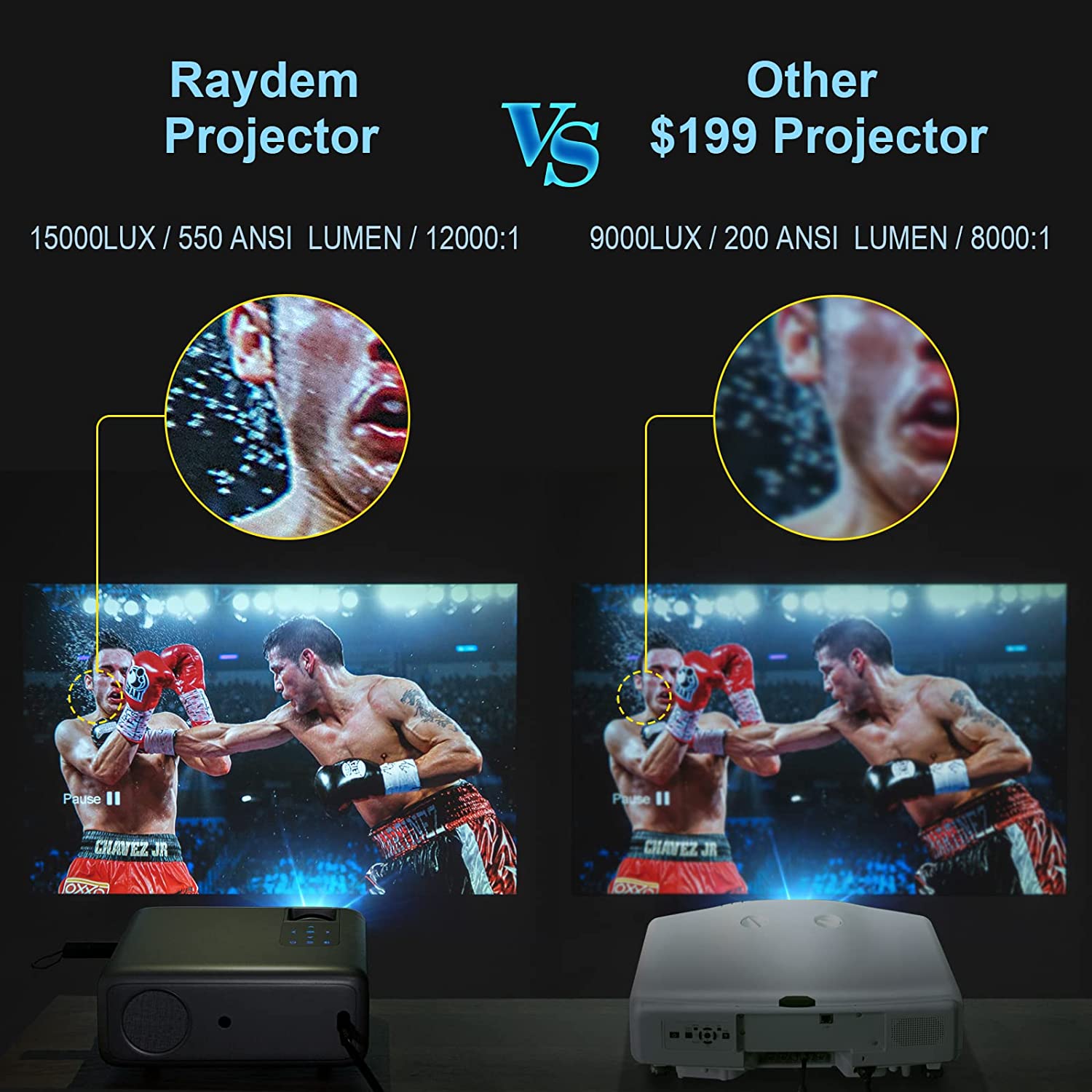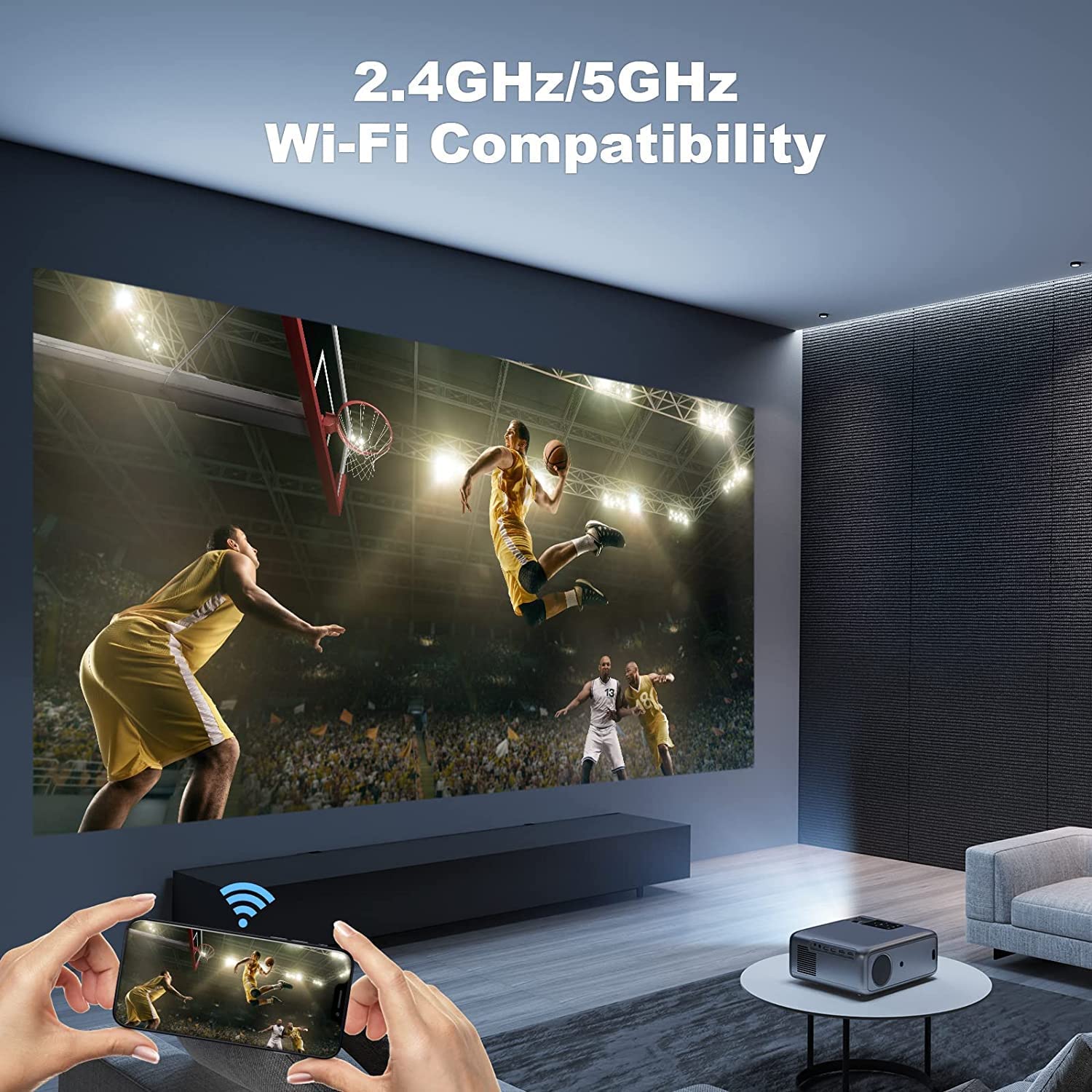 • ?【Native 1080P, 15000L & 550 ANSI Lumens, 4K supported】 2023 upgraded WiFi projector, using the original physical resolution of 1920x1080, has 3 layers of refractive glass lenses. Compared to our competitors who use single layer lenses, we use multi-layer refractive glass lense technology to reduce projecting blurry edges on screen. Its display is calculated to render sharper resolution to the full screen. It has 550 ANSI lumens, much brighter and more colorful than other 1080p projectors.