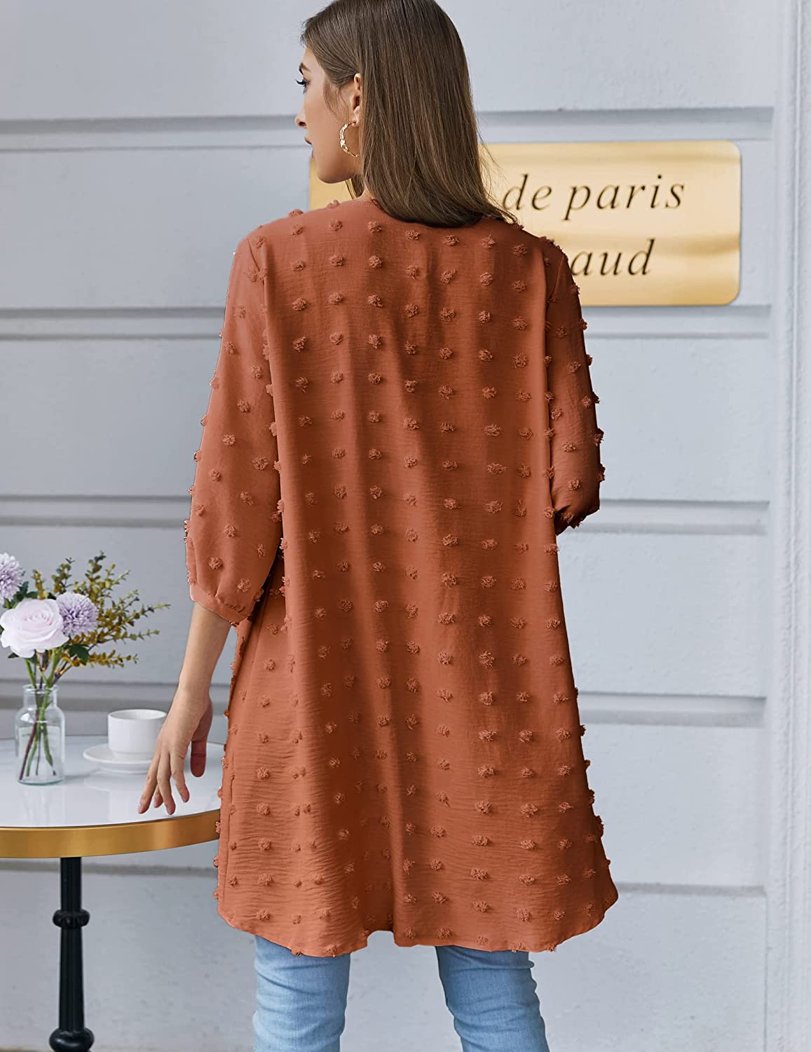 Hotouch Womens Cardigan Summer Chiffon Swimsuit Coverup Kimono Open Front 3/4 Sleeve Lightweight Beach Cover Up Tops