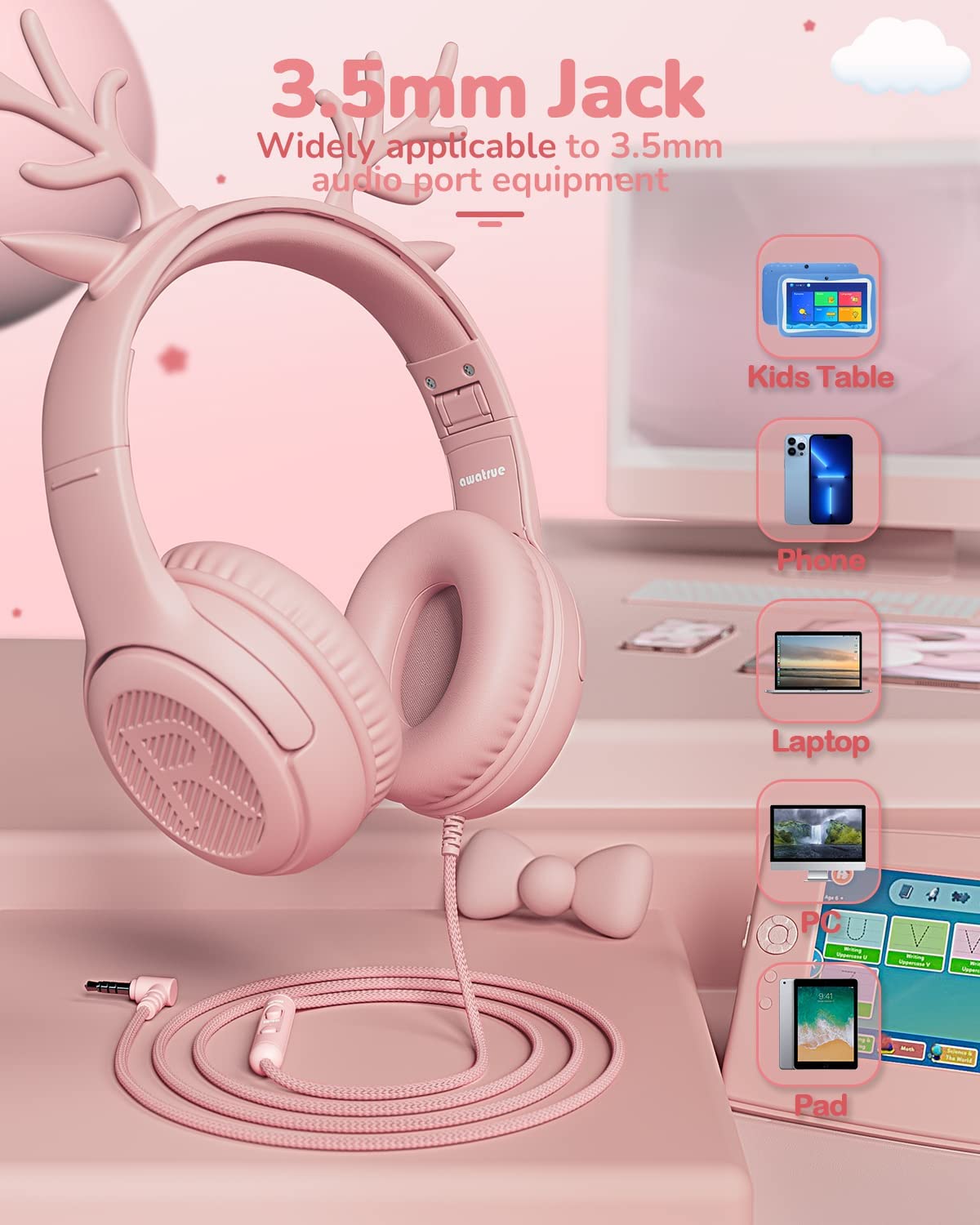 ?【Share the Fun】Awatrue AT2 Kids Headphones come with a shared audio jack, allowing your child to enjoy music, movies, or games with friends and family through a 3.5mm cable, without needing a splitter.