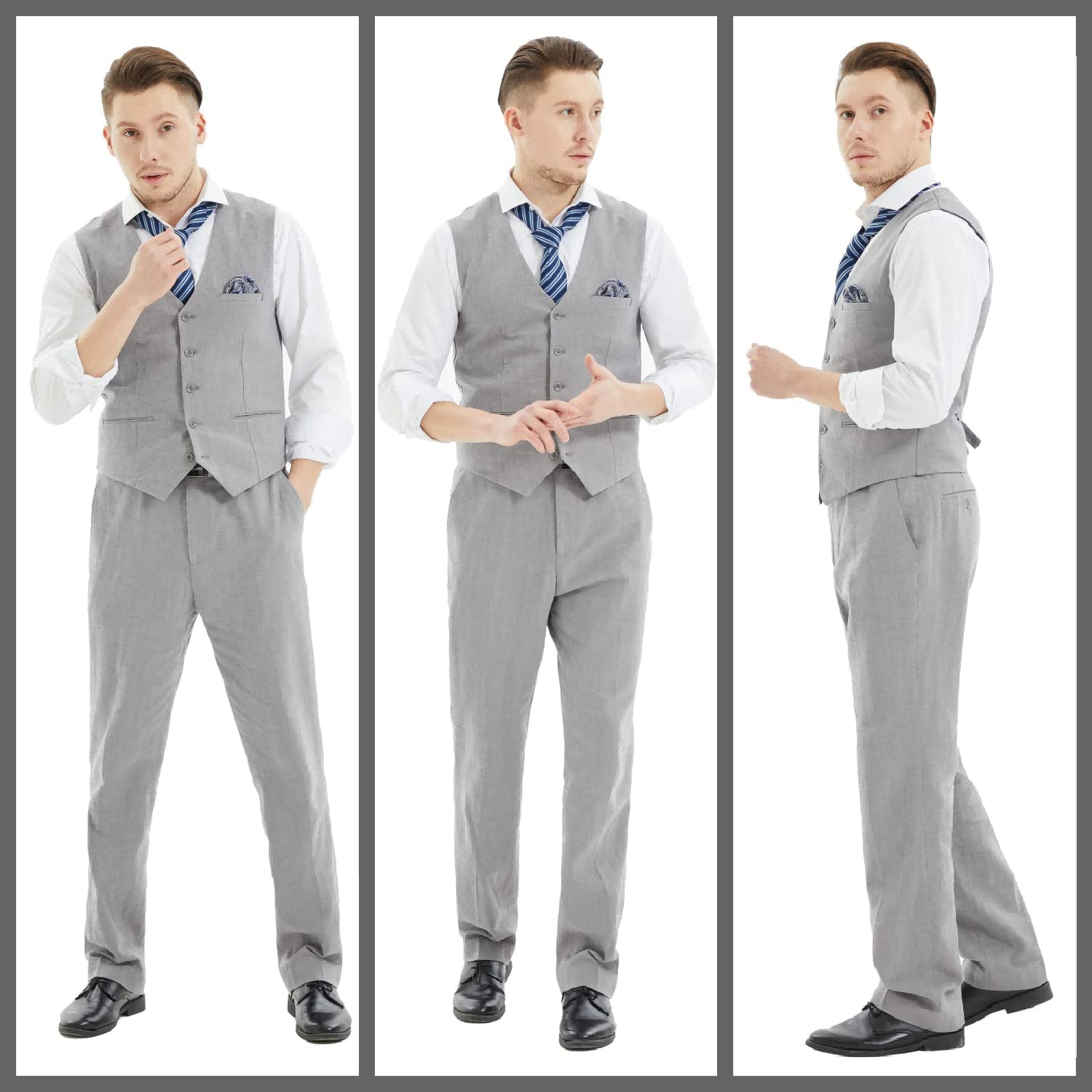 - 2 PIECE? ACTUALLY 3 PIECE!--In Addition To Vest And Pants, We Also Include A High-Quality Pocket Square ($10 Dollars Retail)!Boasting a classic design in a standard regular fit.Take advantage of top-notch tailoring for a look that's not just eye-catching, but comfortable too.