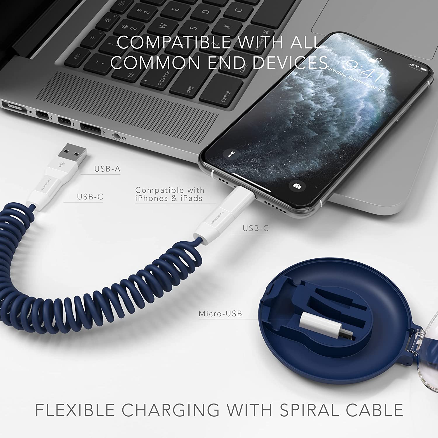 - COMPACT: With a length of 50 cm and a diameter of 6.5 cm, your universal charging cable fits in any trouser pocket and is always with you anywhere: as a charging and data cable for all your devices.