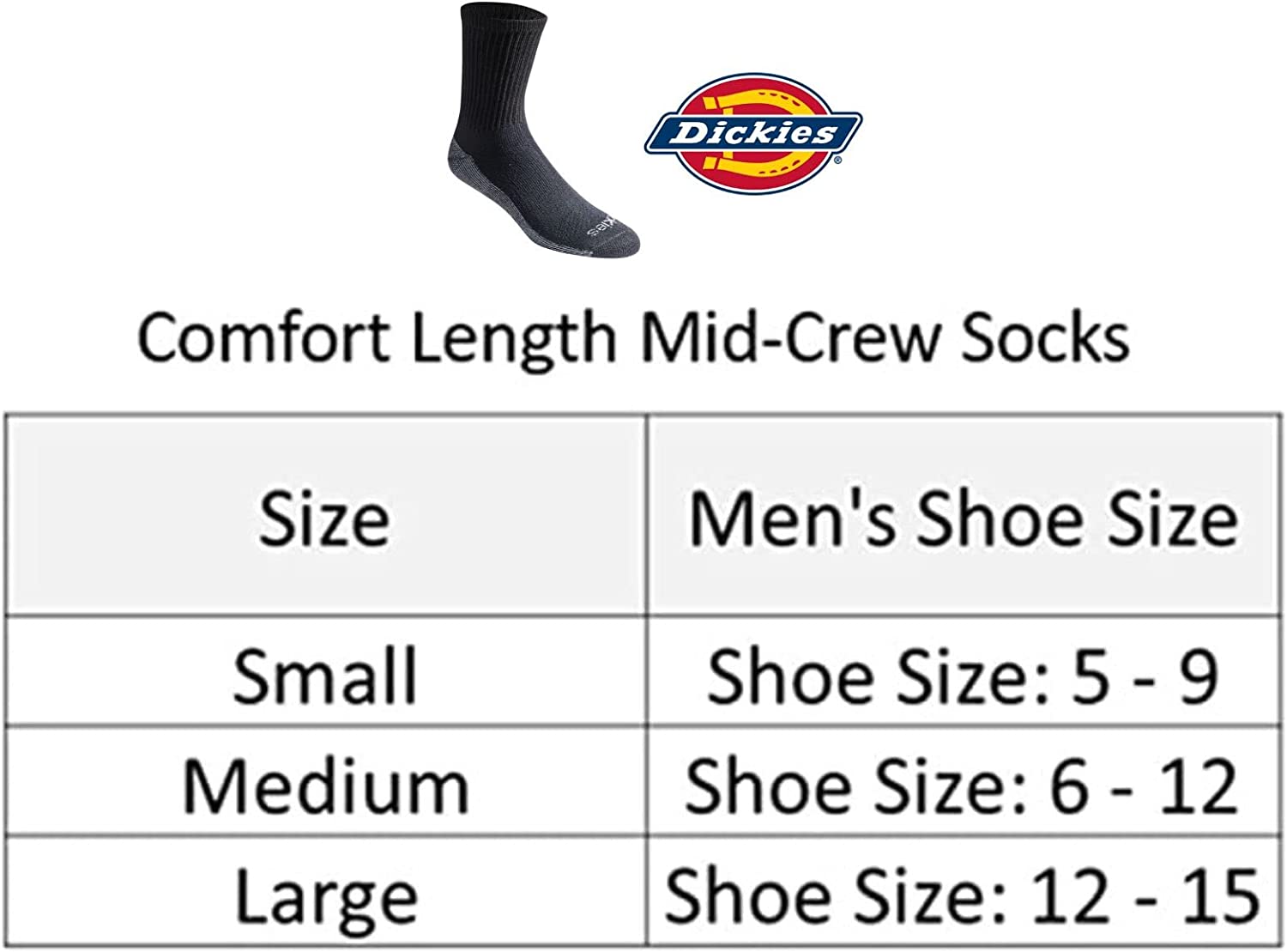 New Dickies Men's Dri-tech Moisture Control Comfort Length Crew Socks 6 and 12 Pairs with 70% Cotton blend better Fit and better value – Dri-tech Control Comfort Length Crew Socks Product, Engineered with Soft Breathable Moisture Control Fibers and Full Cushioned Footbed, Ventilation Channels Enhance Air Flow to Provide Rugged Durability and Comfort, Double Reinforced Heel and Toe, and Arch Compression Support & Stability.