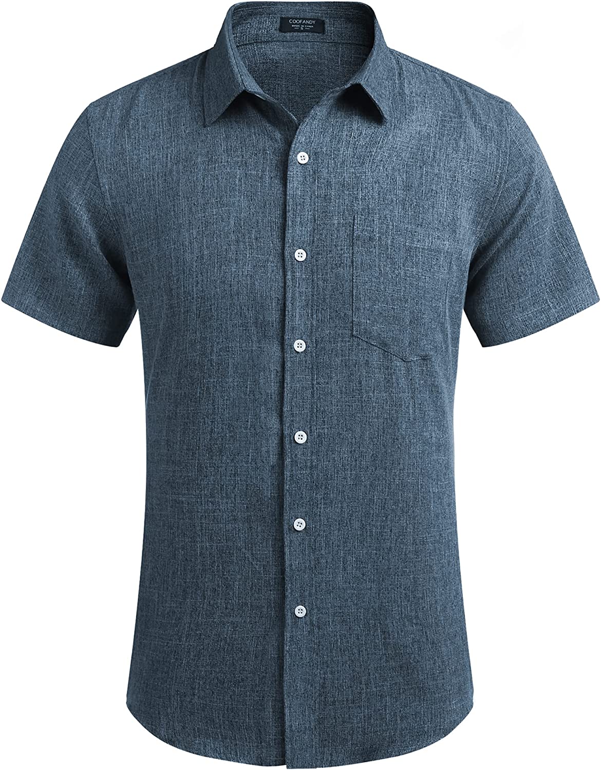 - CLASSIC AND STYLISH LOOKING --- The linen casual business slim fit button down shirts for men have the exquisite craft, lightly tapered through the waist for a tailored look. Match with solid t-shirts, or suit sportcoat blazer, chino pants, jeans and shorts to round out your look.
