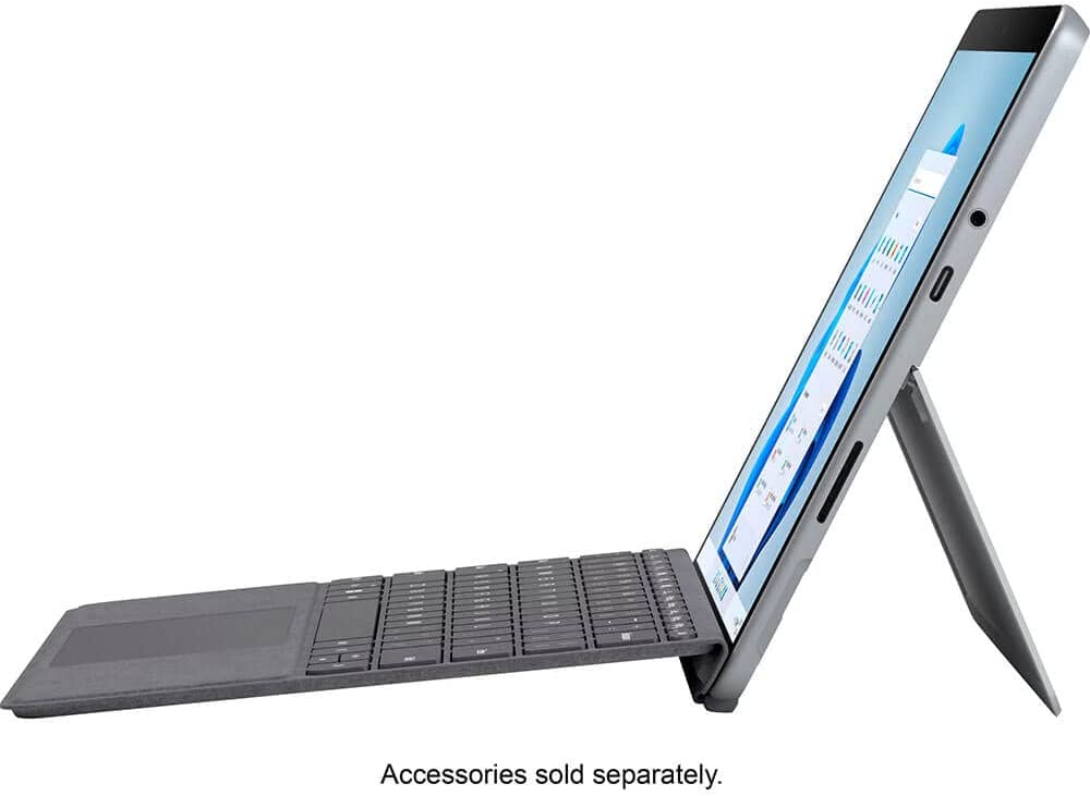 * Some accessories and software sold separately. Available colors and materials may vary by market and configuration. 1. Up to 11 hours of battery life based on typical Surface device usage. Testing conducted by Microsoft in August 2021 using preproduction software and preproduction configurations of Surface Axton. Testing consisted of full battery discharge with a mixture of active use and modern standby.  The active use portion consists of (1) a web browsing test accessing 8 popular websites over multiple open tabs, (2) a productivity test utilizing Microsoft Word, PowerPoint, Excel and Outlook, and (3) a portion of time with the device in use with idle applications. All settings were default except screen brightness was set to 150nits with Auto-Brightness disabled.  Wi-Fi was connected to a network.  Tested with Windows Version 11.0.22000.9 (21H2).  Battery life varies significantly with settings, usage and other factors.   (4) Weight not including Surface Go Type Cover. (5) Requires Microsoft 365 subscription, sold separately. (6) Windows Defender version 4.12 & 4.18 scored 100% detection for protection against 0-day malware attacks, inclusive of web and e-mail threats (Real-World Testing) by AV-Test, July and August, 2019. (7) OneDrive PC folder backup feature must be enabled by user and files must be saved in Desktop, Pictures, or Document folders available on Windows PC’s only.