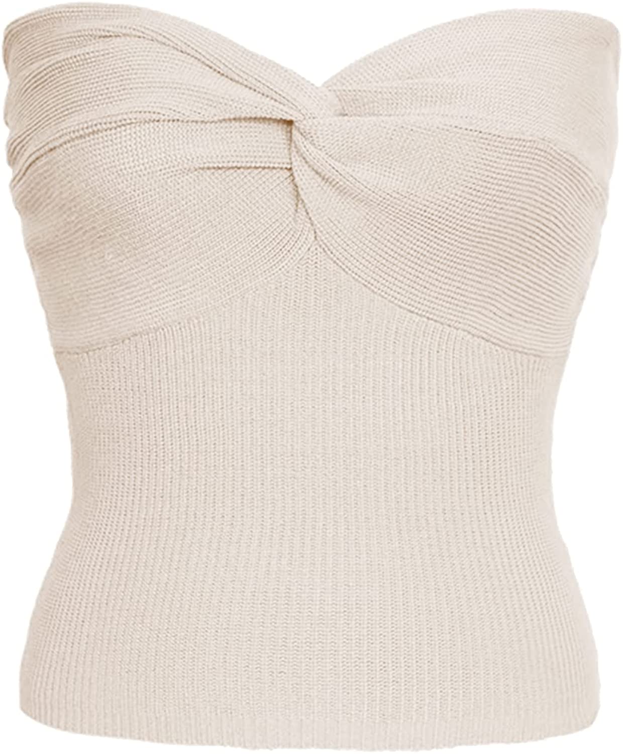 Womens Crop Camis Feature: Strapless, Sleevess, Twisted Knot Front,Ribbed Knit,Sweetheart Neckline,Scoop Underbust, Keep you trendy, flattering and eye-catching at any time and anywhere.